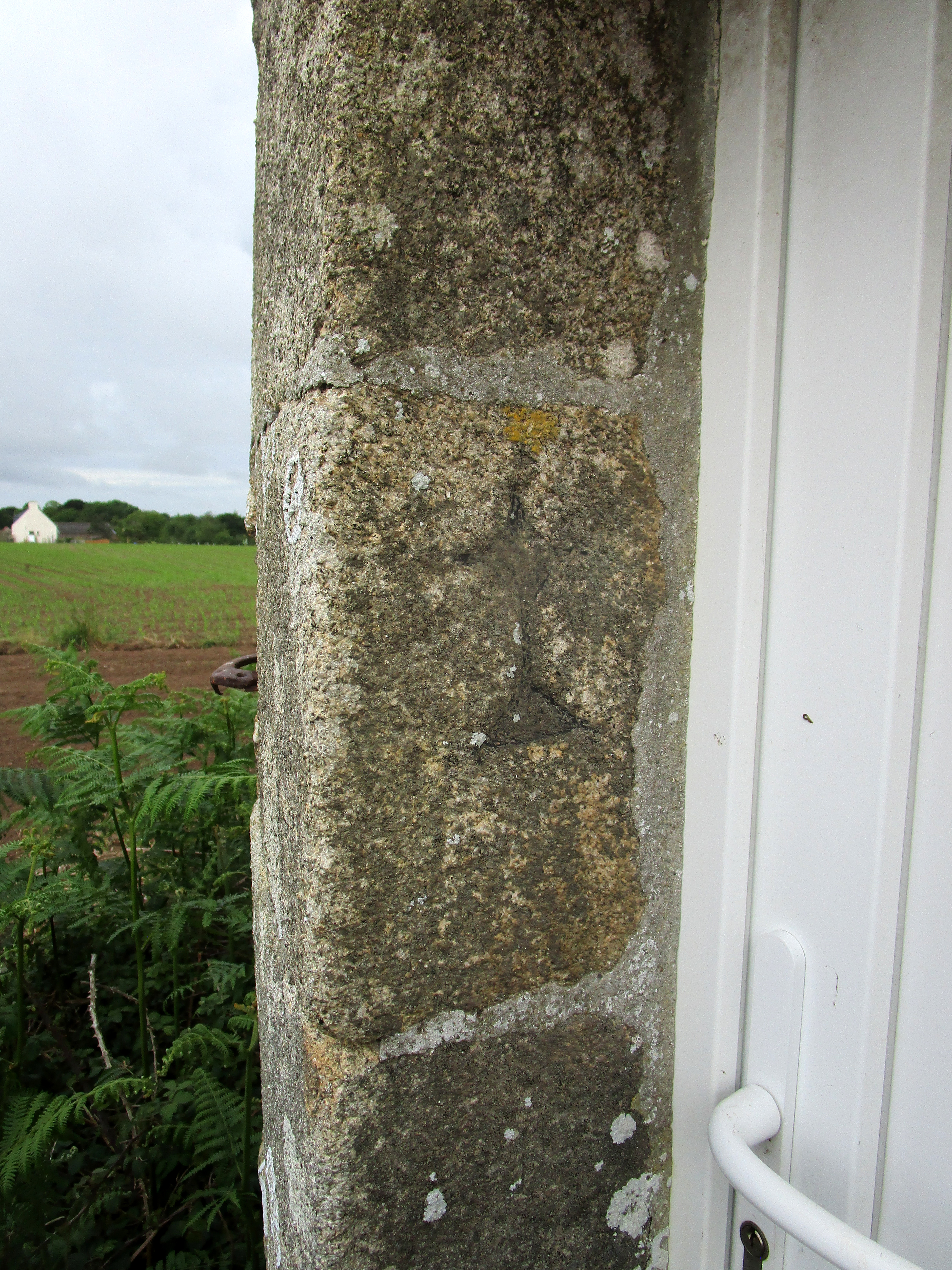 Détail de la croix stylisée gravée sur le jambage ouest de la porte sud. (2022)Immatriculation