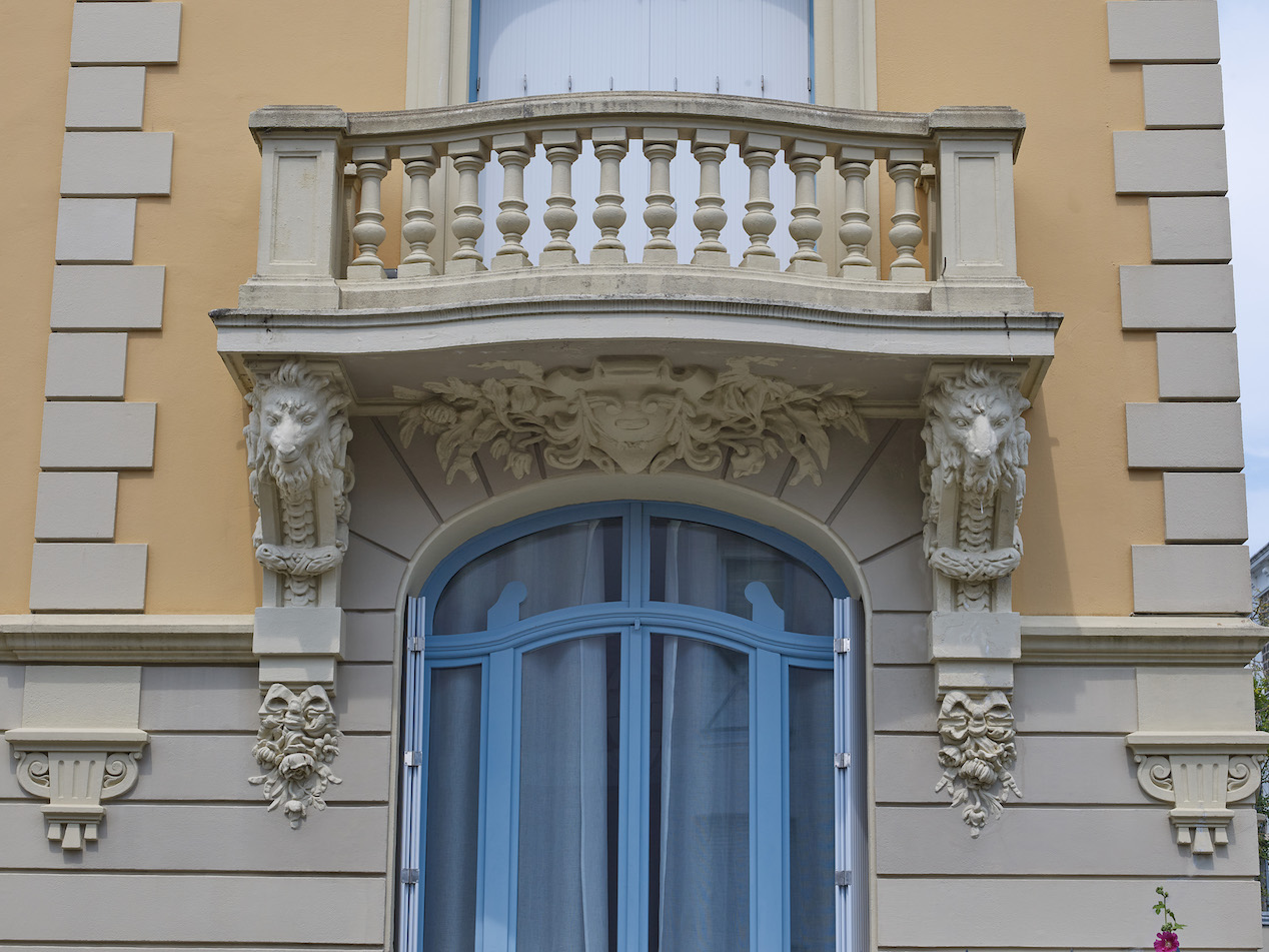 Détail du balcon à balustres sur consoles à tête de bélierImmatriculation