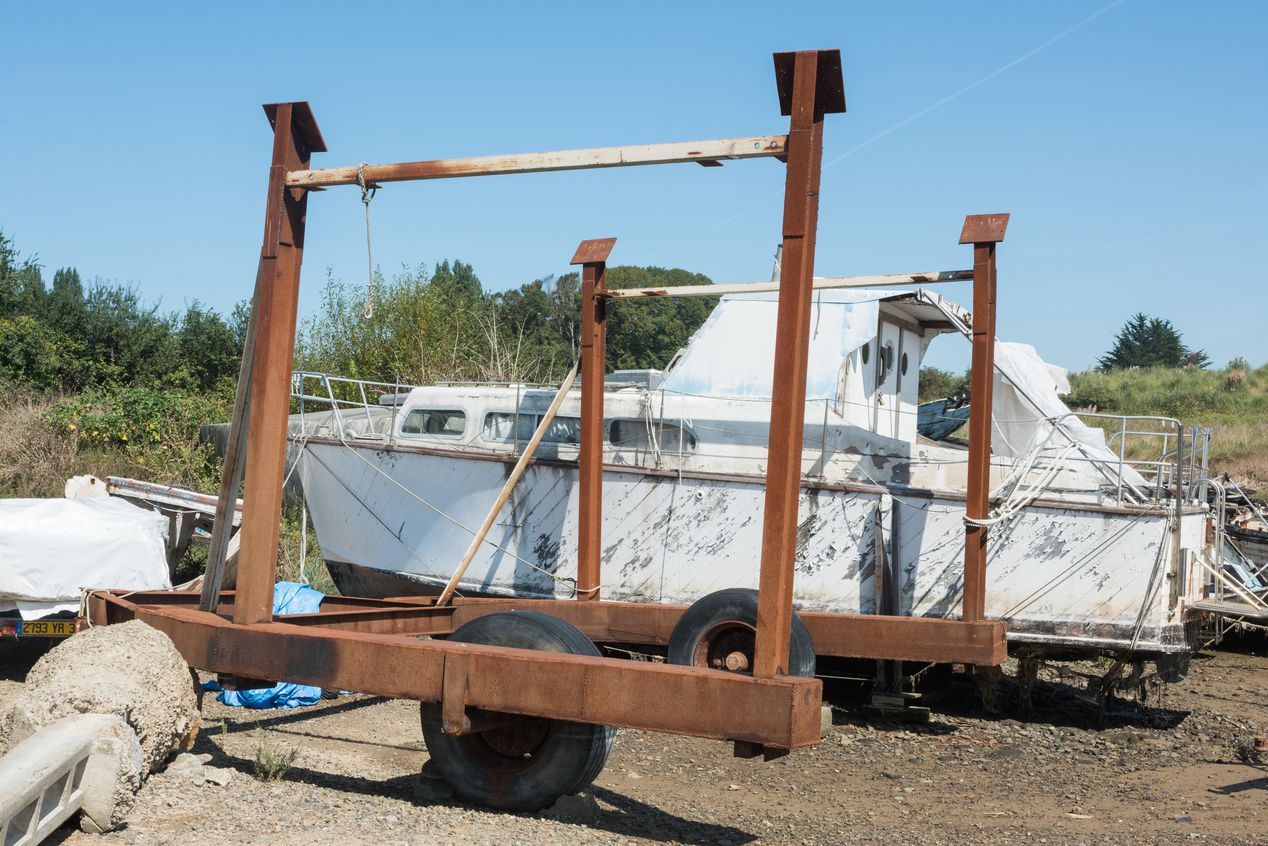 Matériel de chantier, 'trique-balle' en fer pour le transport des bateaux, vue généraleImmatriculation