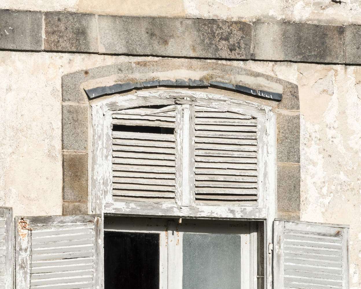 Façade méridionale, détail d'un larmier en ardoise au dessus de la baieImmatriculation