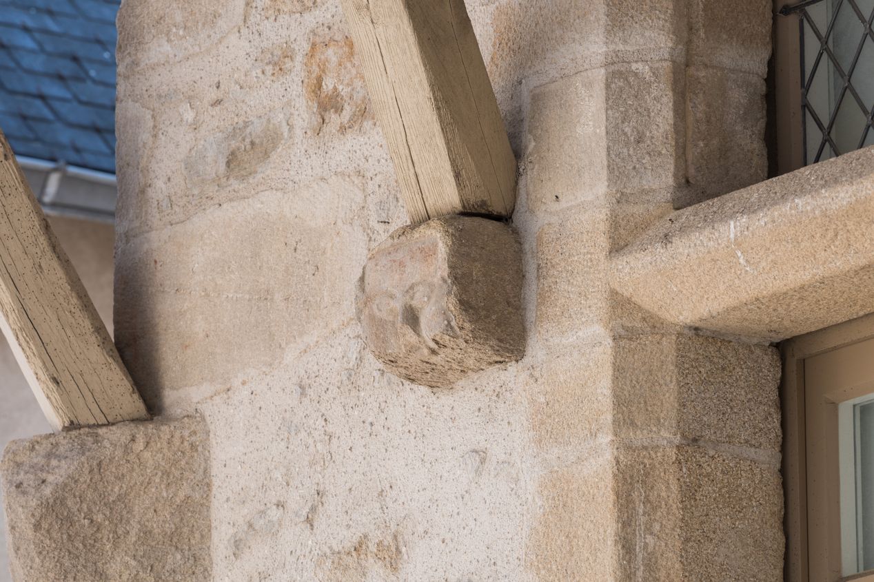 Visage sculpté sur la façade nord-ouest sur lequel repose une console de l’encorbellementImmatriculation