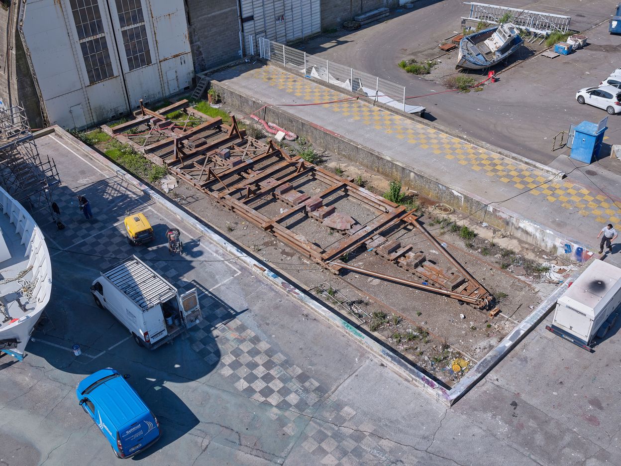 Dom-bunker Ouest dit "T6" avec encuvement pour canon antiaérien puis usine de construction navale, aire de réparation navale, port de pêche de Keroman (Lorient),