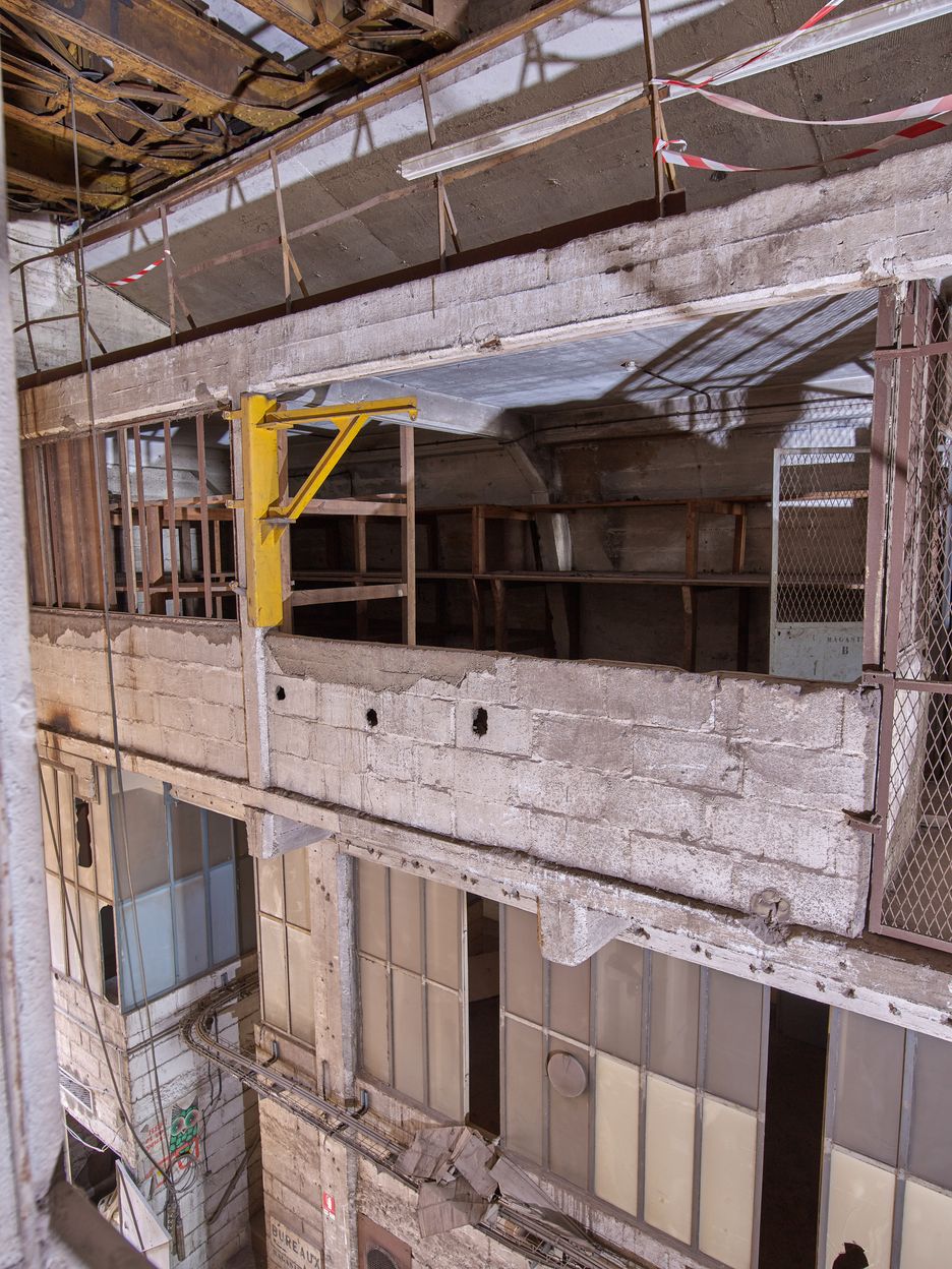 Vue des ateliers et bureaux ouest de la nef : niveaux supérieursImmatriculation