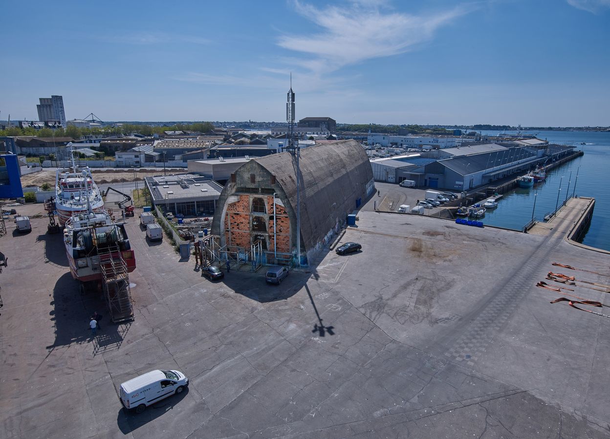 Dom-bunker Est dit "T5" puis entrepôt, aire de réparation navale, port de pêche de Keroman (Lorient),
