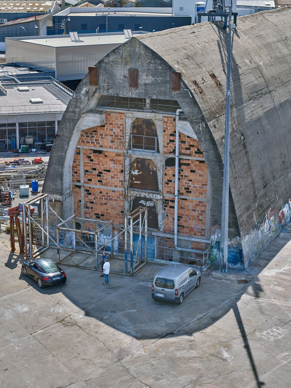 Dom-bunker Est dit "T5" puis entrepôt, aire de réparation navale, port de pêche de Keroman (Lorient),