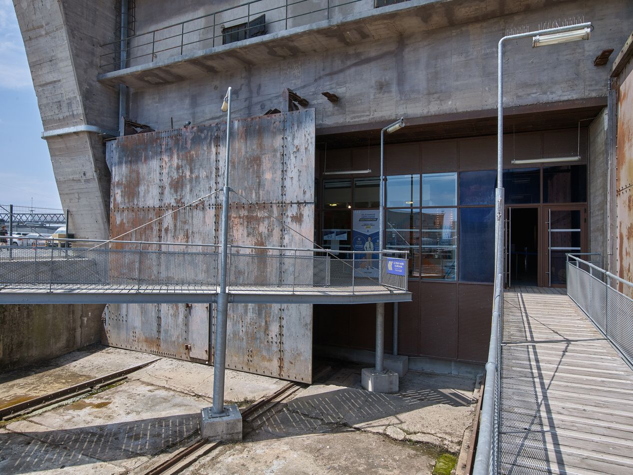 Vue du front avant : entrée de l'alvéole "K6a", portes bindées et passerelles du musée (2021)Immatriculation