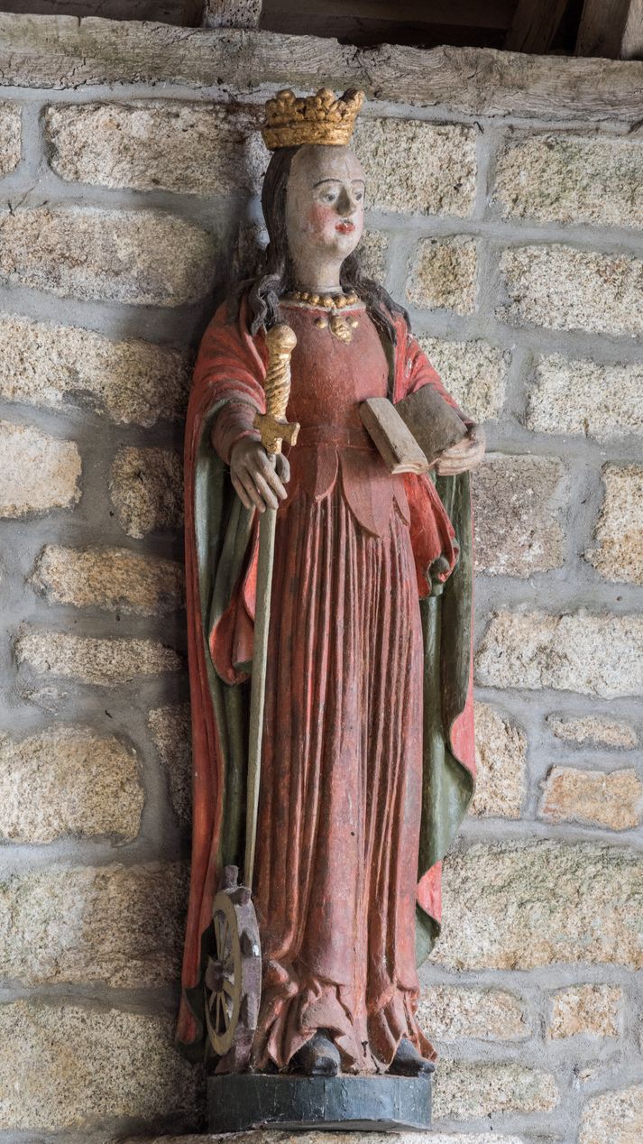 Statue (d'applique, petite nature) : sainte Catherine d'Alexandrie, chapelle Sainte-Catherine (Meslan),