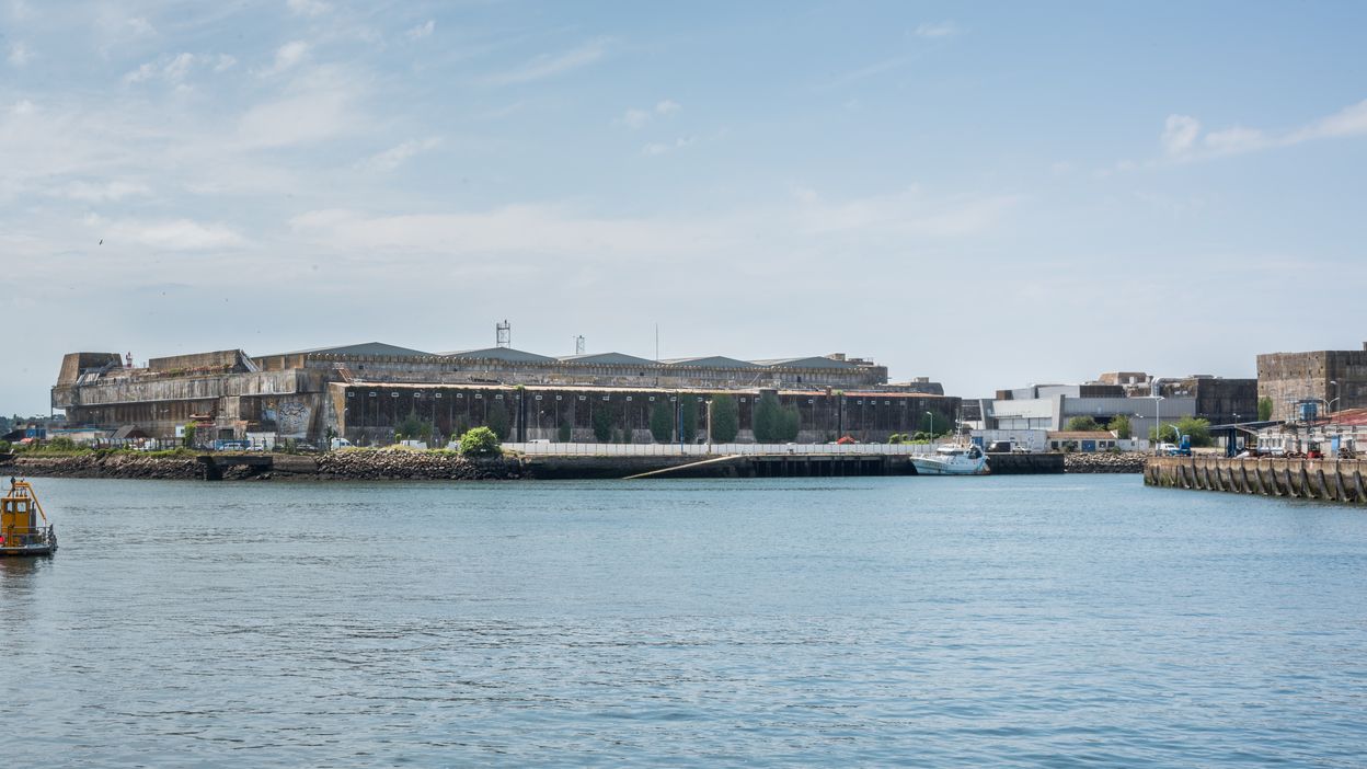 Vue générale de l'élévation nord (front arrière) depuis le port de pêcheImmatriculation