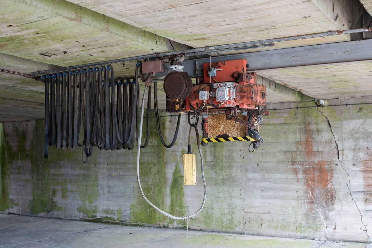 Vue d'un treuil français disposé dans l'une des chambres d'explosionImmatriculation