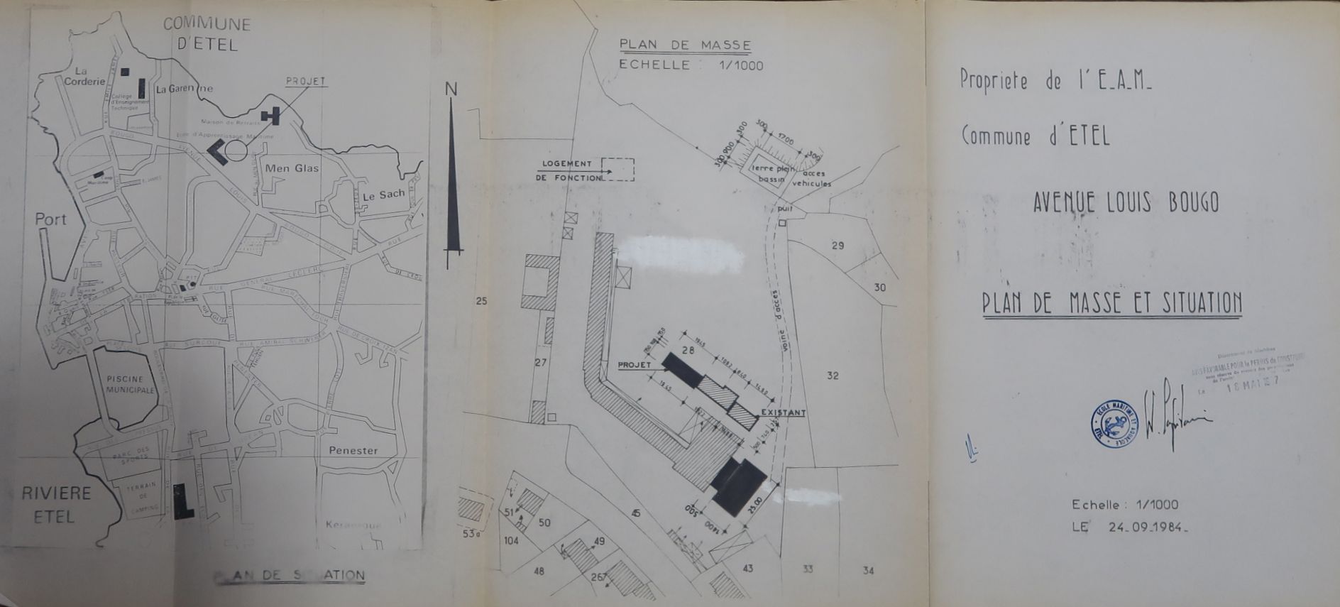 Archives municipales d'Etel : M - école d'apprentissage maritime. Plans des permis de construire. E.A.M. d'Etel, 1952 1985 et 1987.