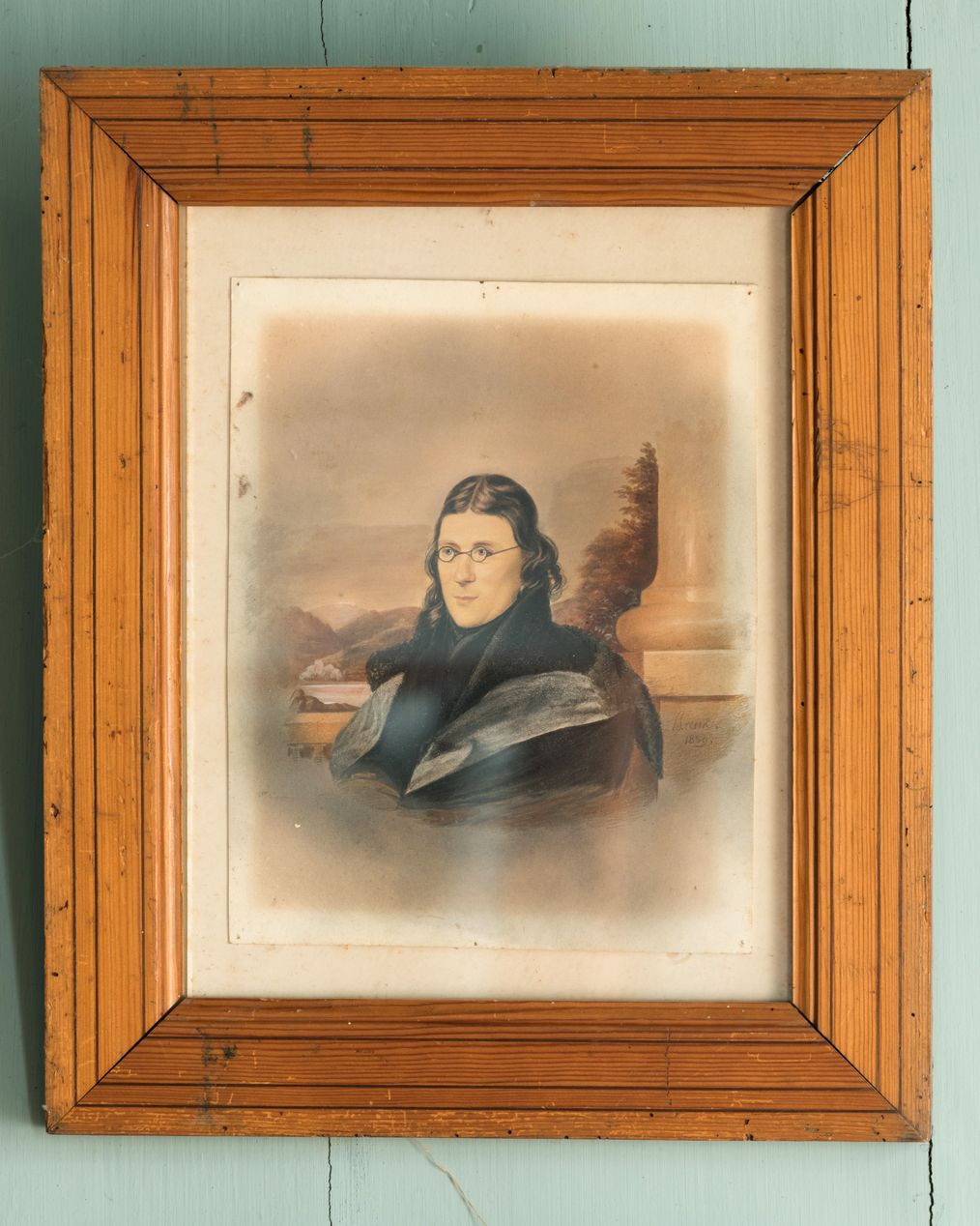 Vue intérieure, détail d'un portrait d'Hippolyte de la Morvonnais, écrivain et restaurateur du châteauImmatriculation