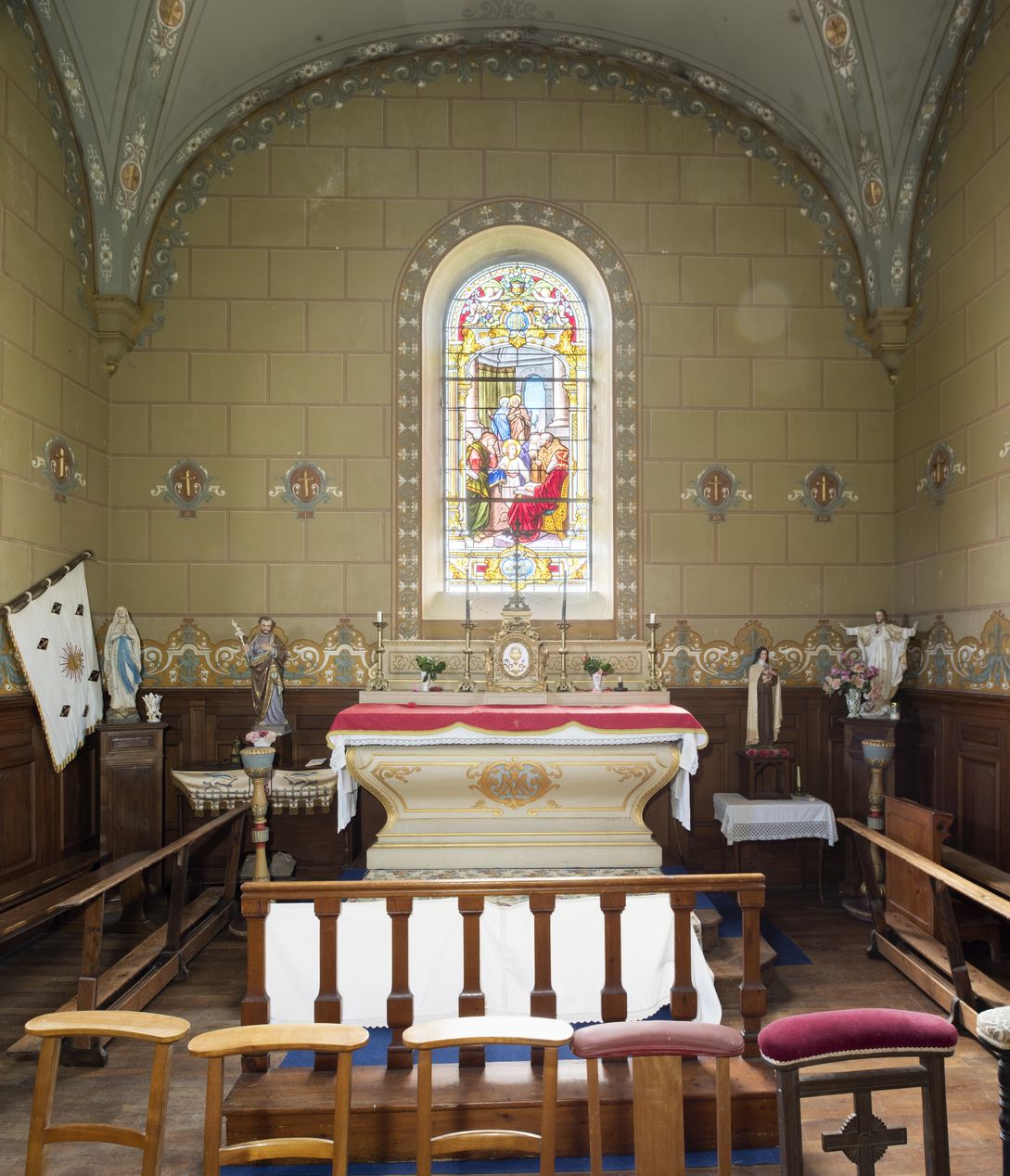 Vue intérieure de la chapelle, choeur et autelImmatriculation