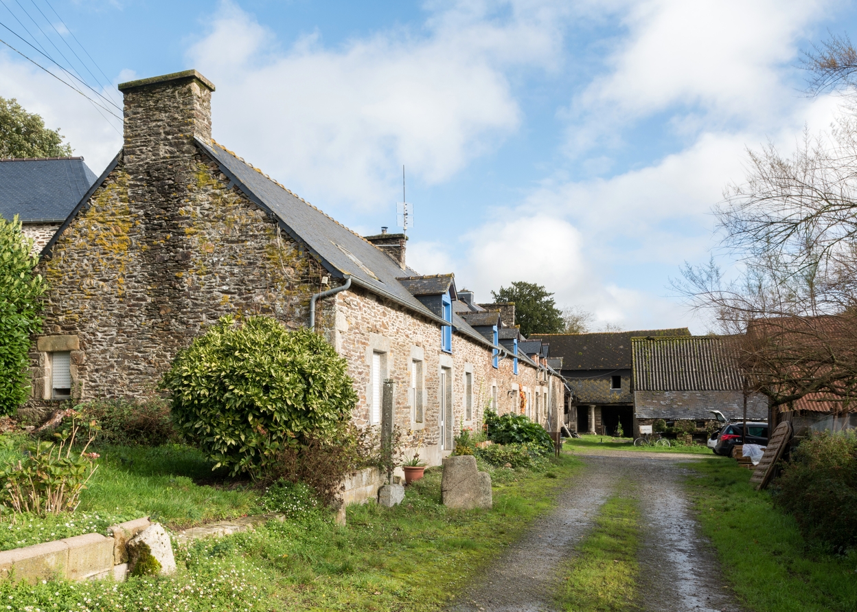 Ensemble textile : blanchisserie, logis sur porche et maison de marchand de toile, Le Gouézo (Saint-Thélo),