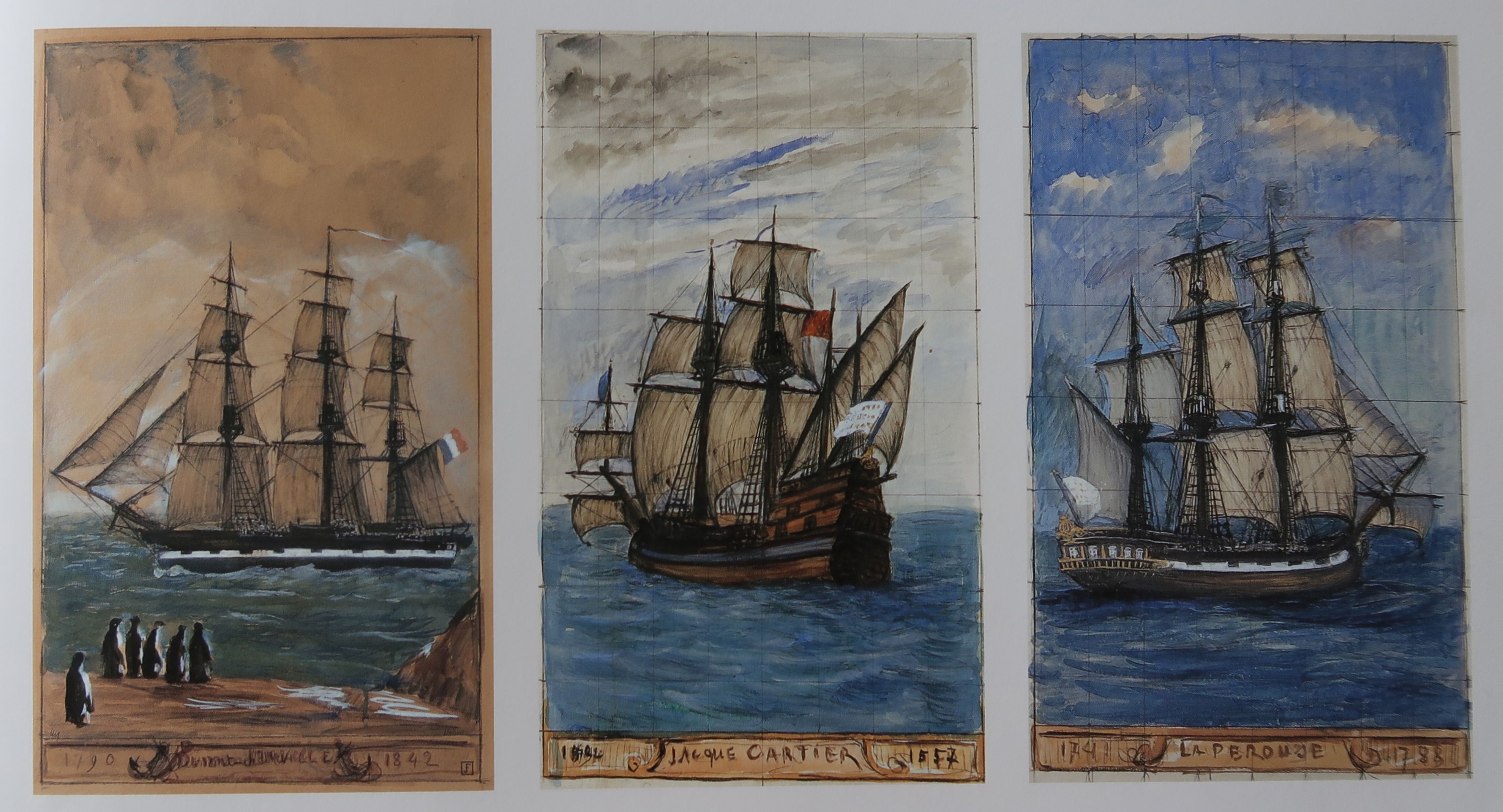 Jean Frélaut, trois études pour la toile "Sortie de navires" (1938) : Le Dumont d'Urville, Le Jacques Cartier, Le La Pérouse. Collection Ville de Paimpol - Musée de la mer.Immatriculation