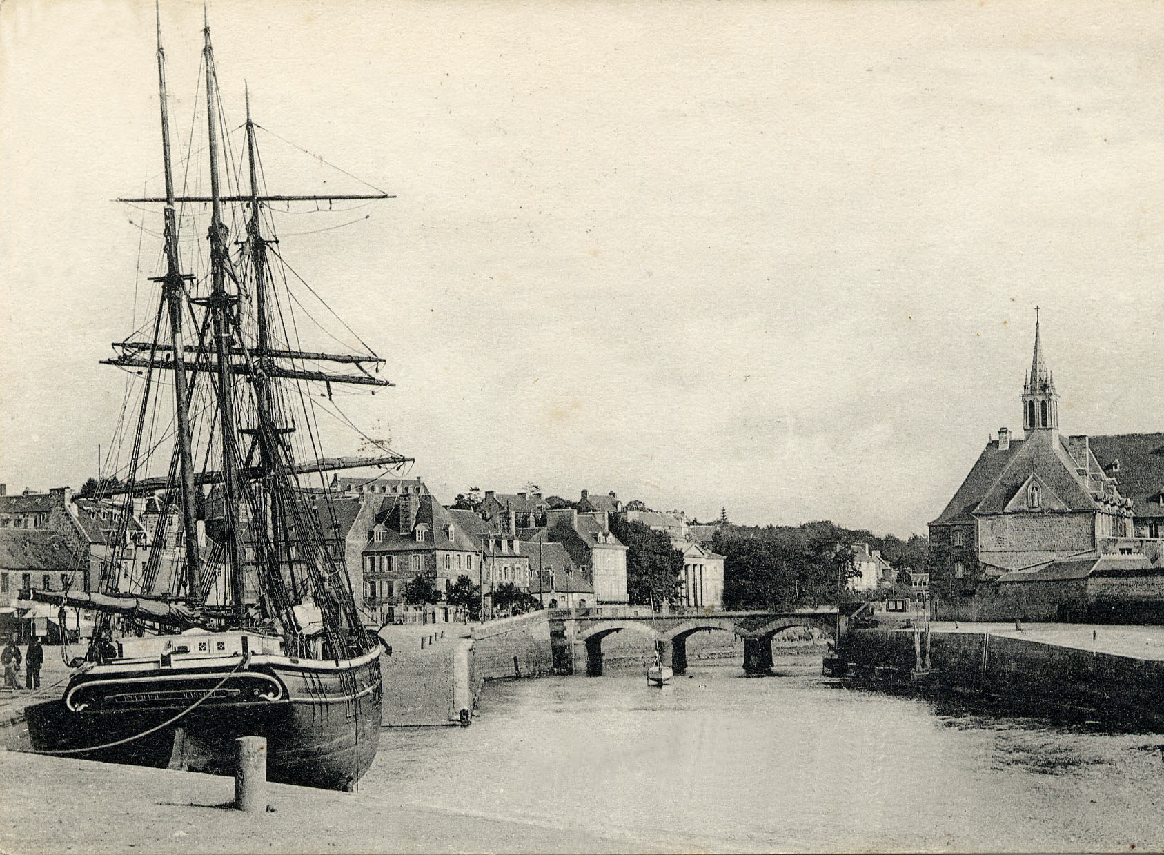 Pont de Sainte-Anne avec en premier plan le trois-mâts-goélette danois Le Hilbur en 1903Immatriculation