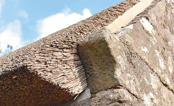 Couverture restaurée dans le département du Morbihan : crossette, chevronnière en granite et chaumeImmatriculation