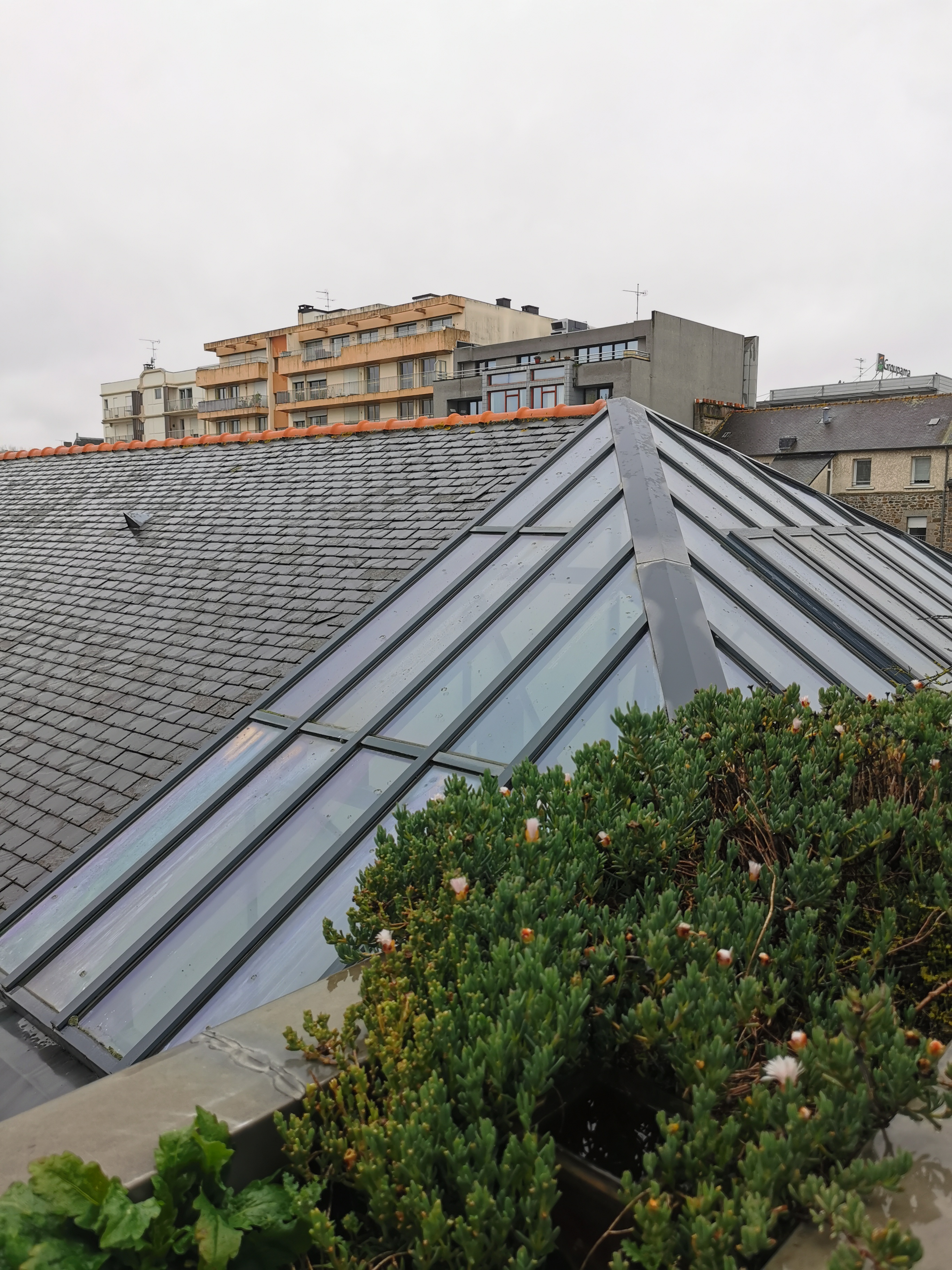 Vue de la couverture de la partie arrière en ardoise et verreImmatriculation