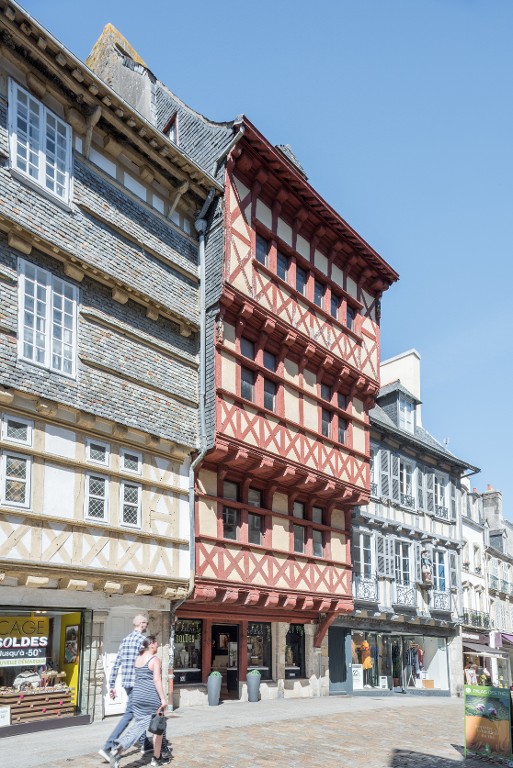 Façades à gouttereaux en pan de bois et en encorbellement composant cette partie du front de rue.Immatriculation