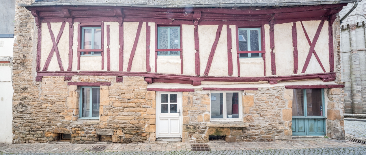 Façade à gouttereau sur rue dont le rez-de-chaussée mais également les bois de l'étage ont été fortement remaniés (2 rue Ellé)Immatriculation