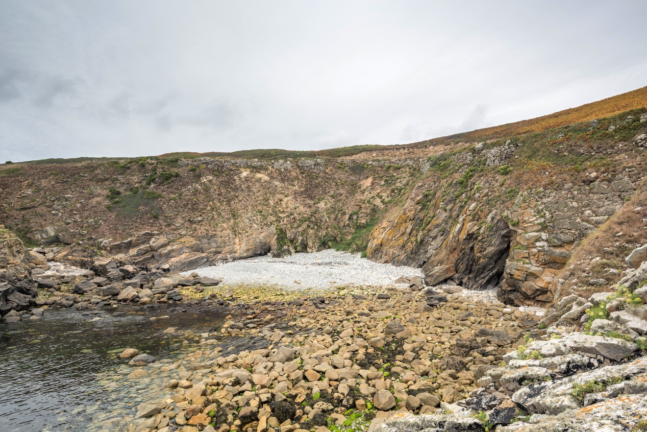 Pors Loubous, muret de soutenement au nord-est de l'anse. Vue générale. (2022)Immatriculation