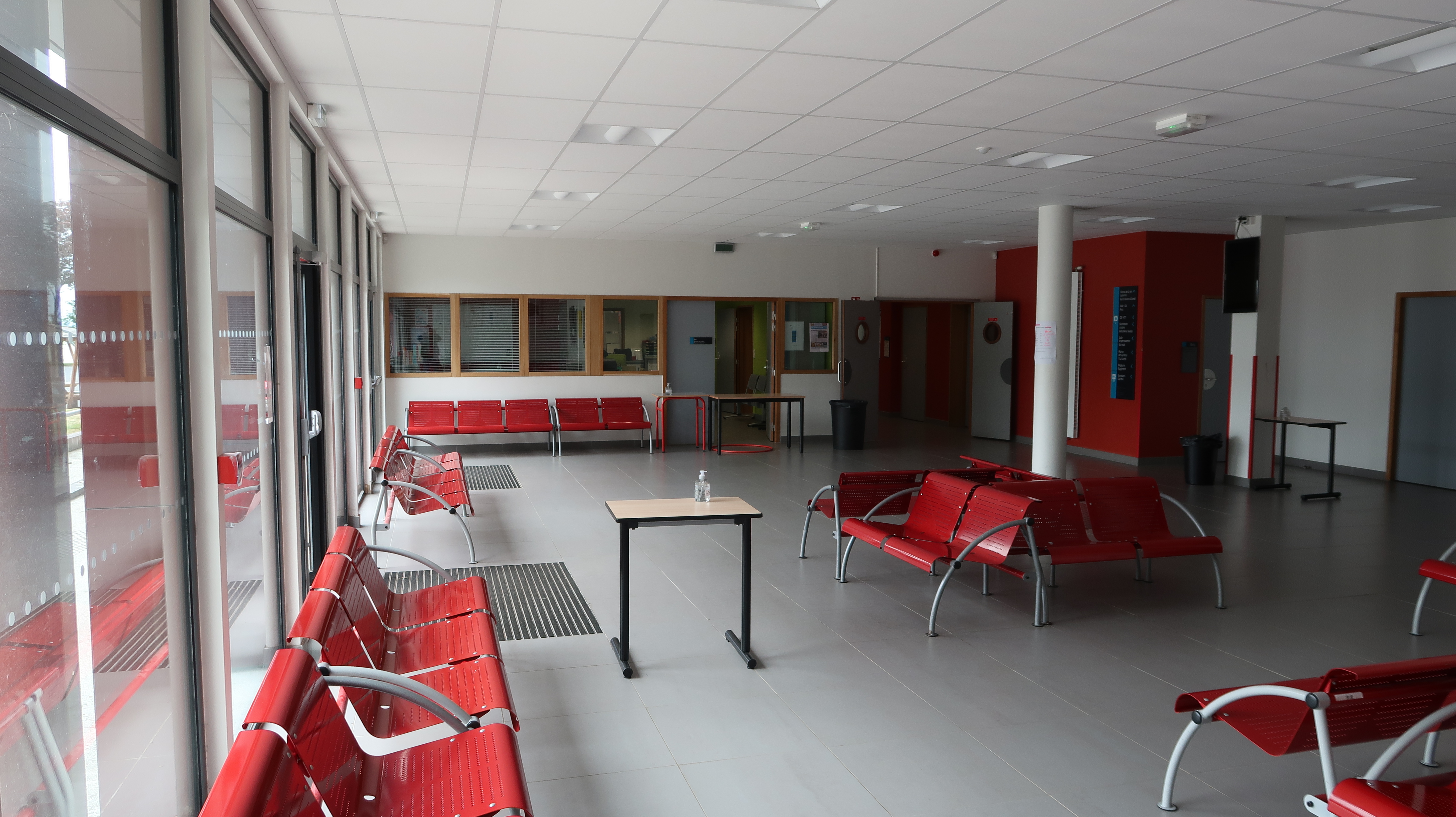 Externat : hall vitré suite à la restructuration du préau est.Immatriculation