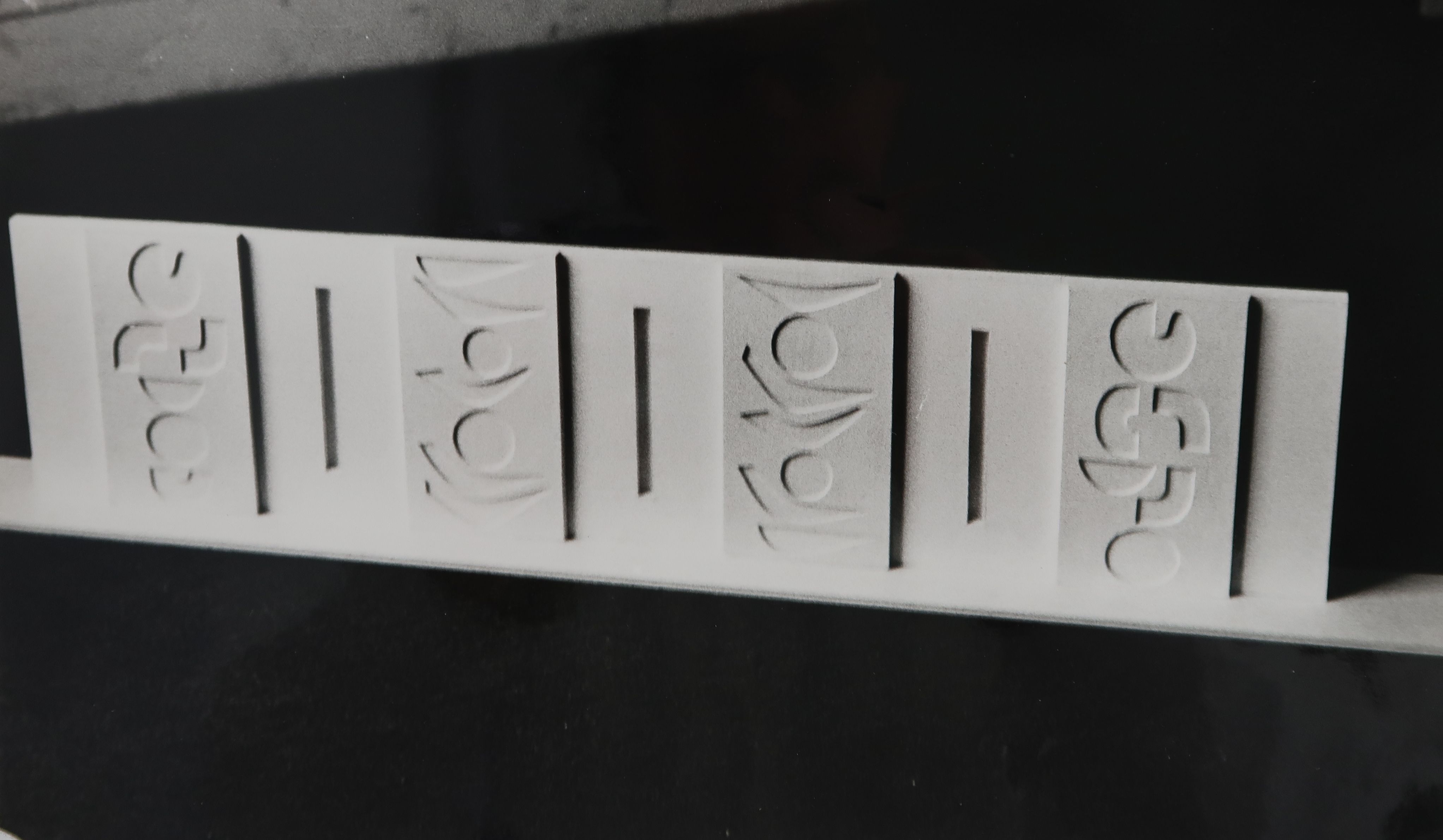 Maquette du mur sculpté. Edgard Pillet, 1970.Immatriculation
