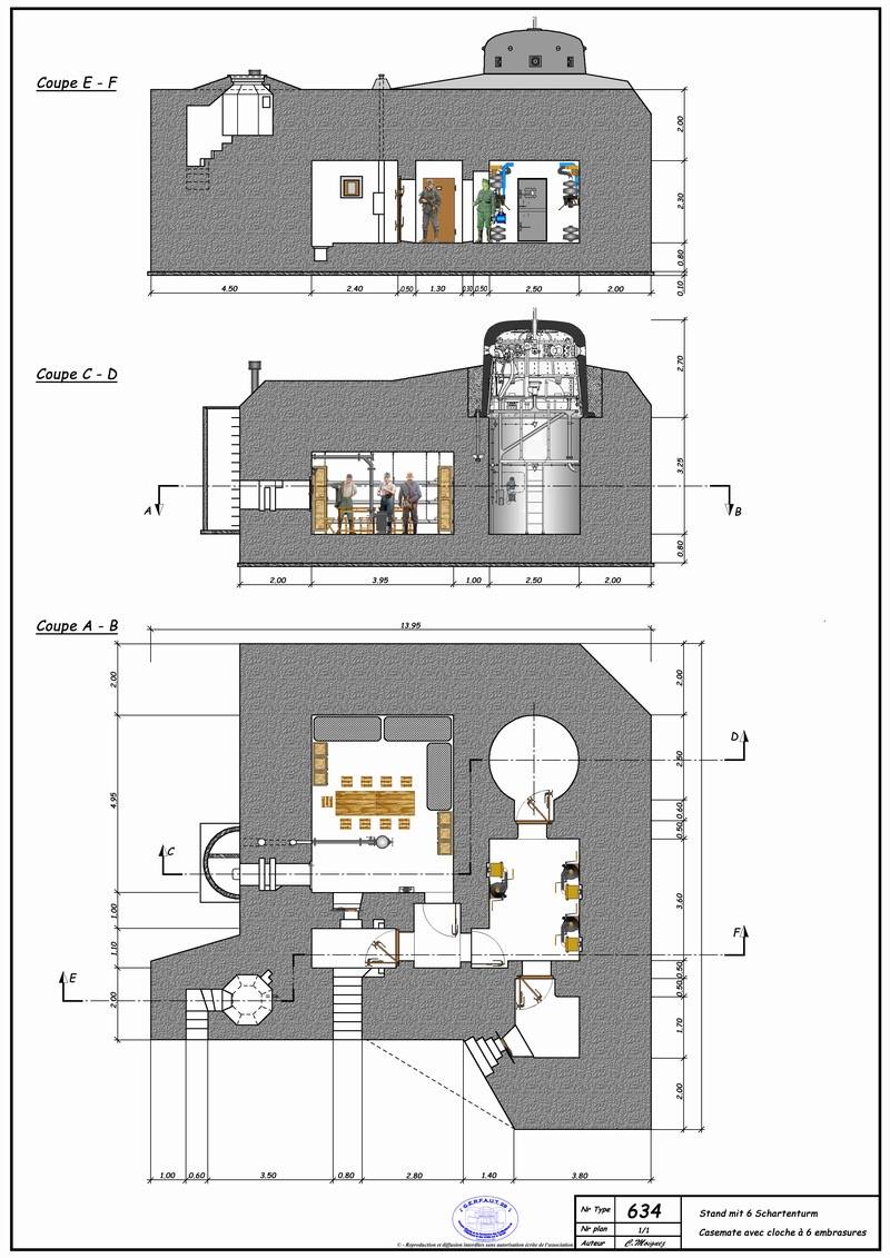 Plan d'un bunker - casemate de type 634 avec cloche bindée à 6 embrasures (dessin : Christian Moignez de l'Association Gerfaut 29)Immatriculation