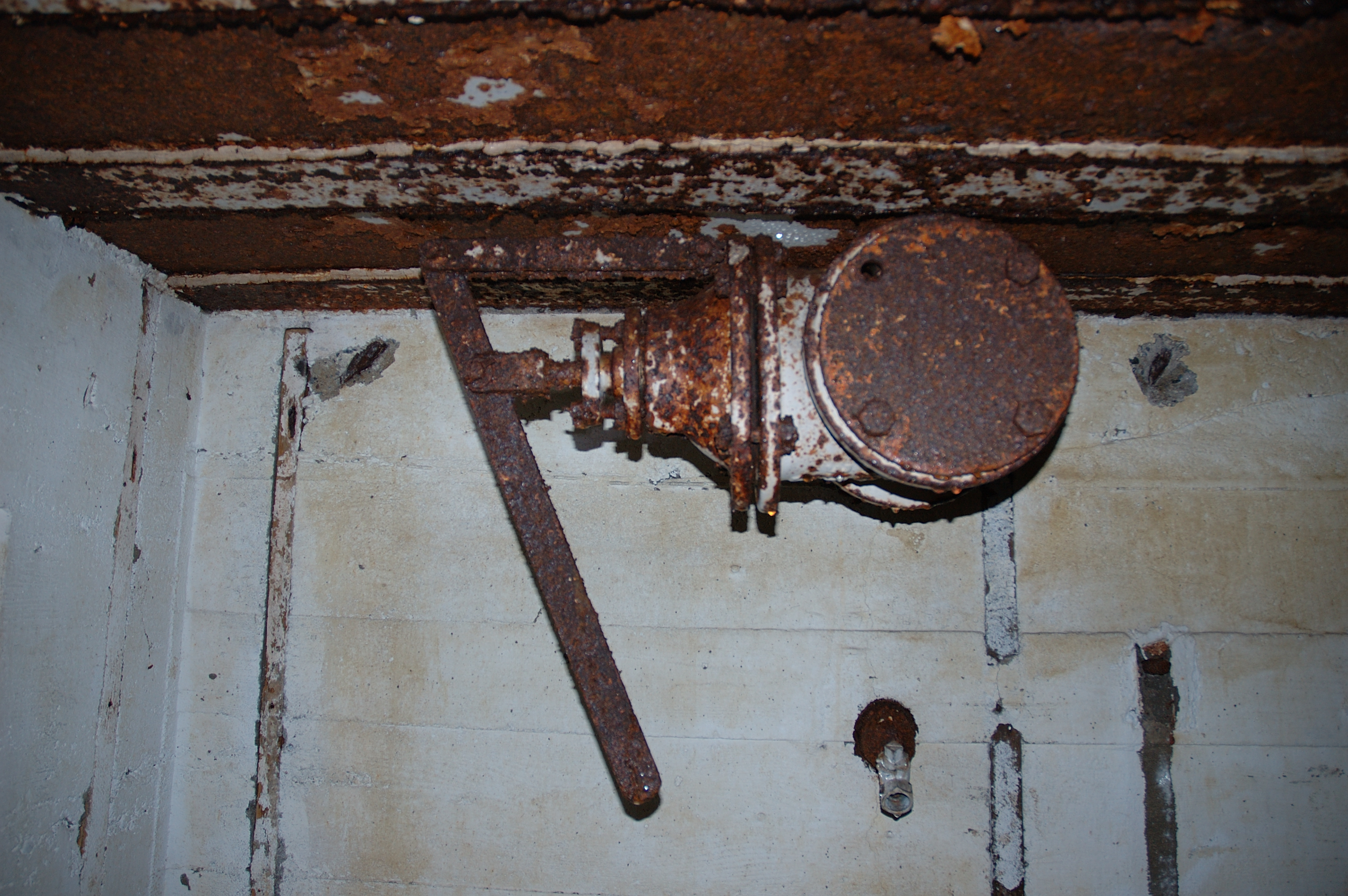 Vue de la chambre de troupe de gauche : vanne (état en 2005)Immatriculation