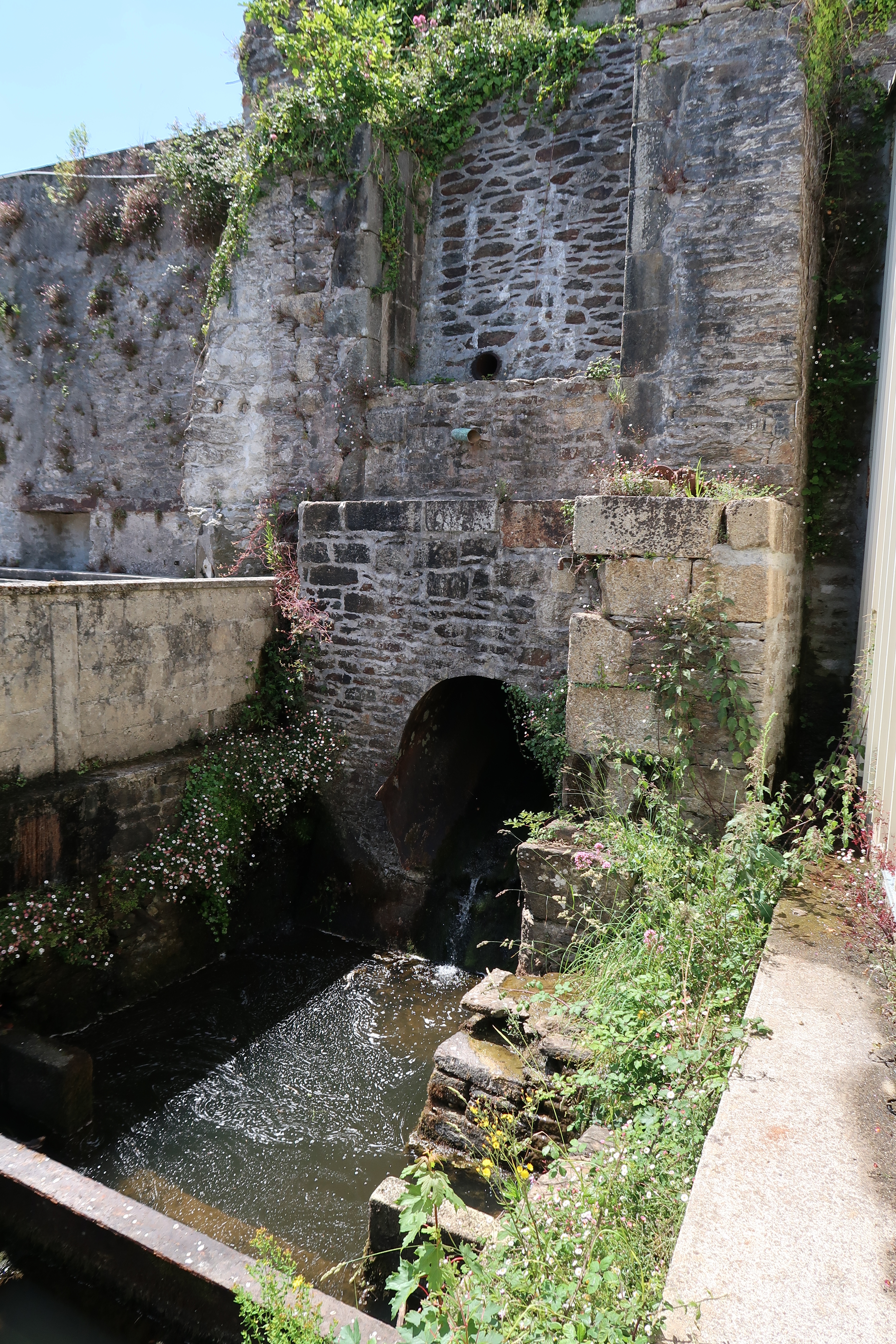 Vue de la sortie d'une conduite d'eau forcée (en partie basse) : s'agit-il de l'emplacement de la turbine ? (état en 2022)Immatriculation