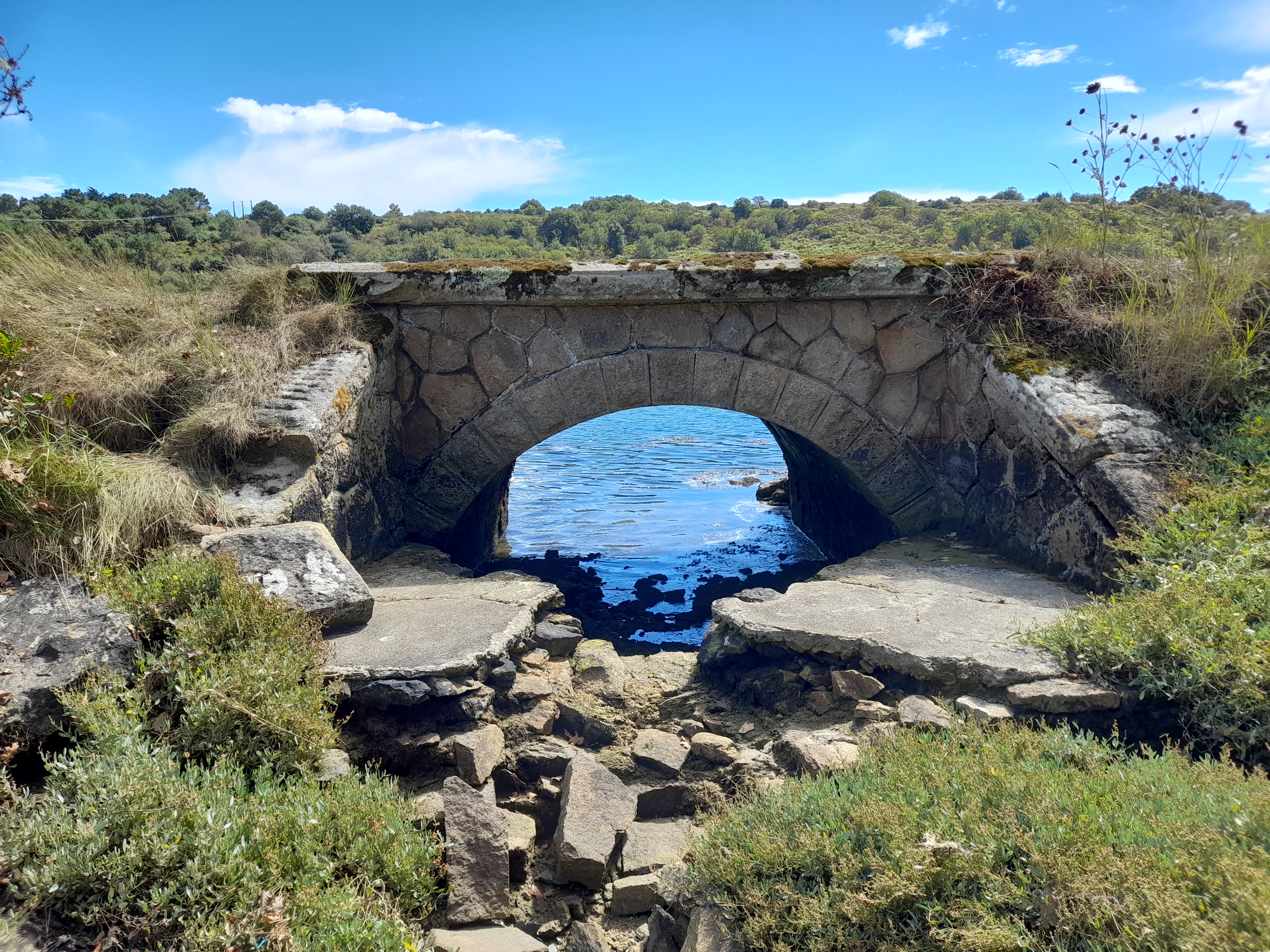 Ligne Audierne-Douarnenez entre Audierne et Pont-Croix. Pont ferroviaire au niveaux de la petite lagune de Lespoul, vue générale prise du nord.Immatriculation