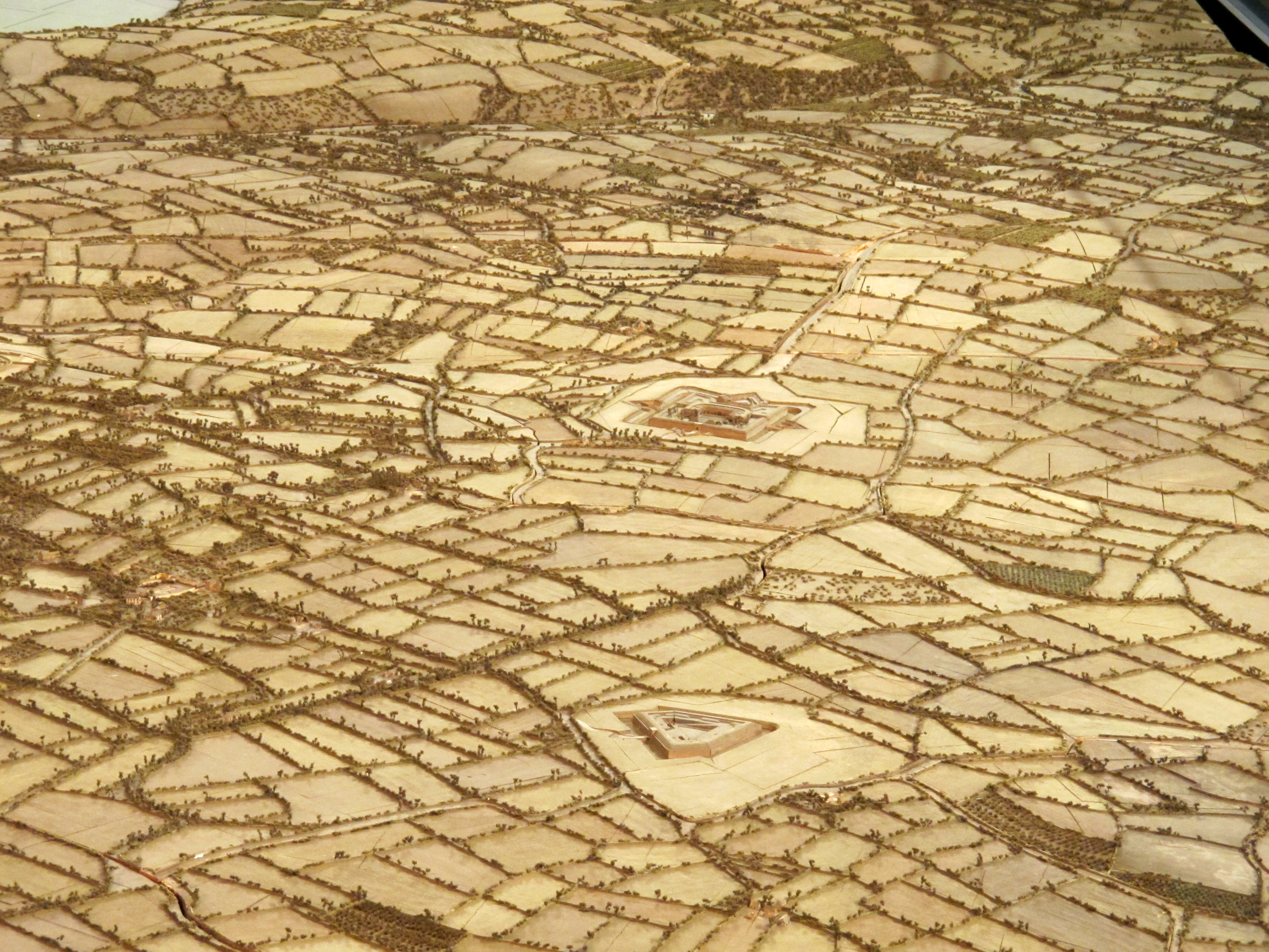 Vue de situation des forts de Keranroux (premier plan) et de Montbarrey (au centre) depuis le nord-est sur le plan-relief de Brest (1807-1811)Immatriculation