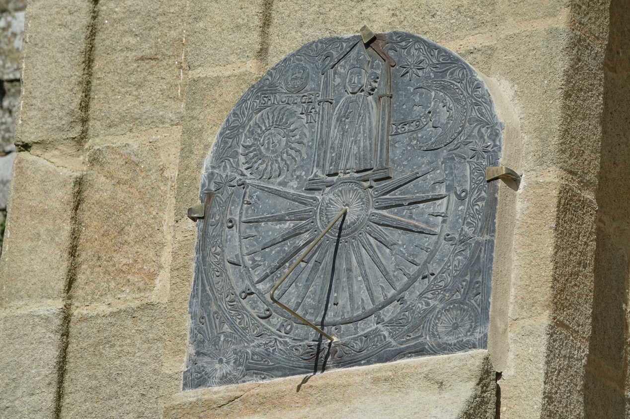 Tour-porche, détail du cadran solaire (2022)Immatriculation