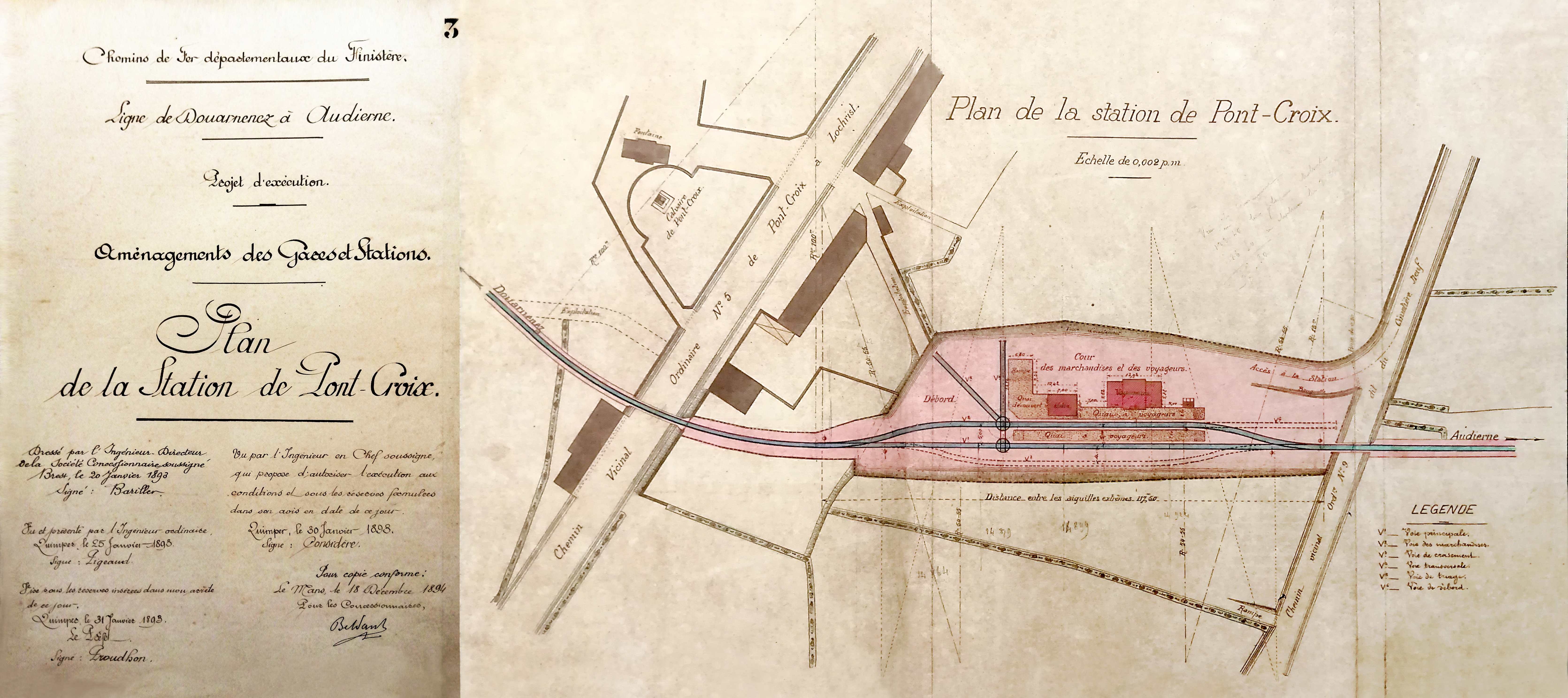 Plan de la station de Pont-Croix. Reproduction du projet d'execution, 1893.Immatriculation