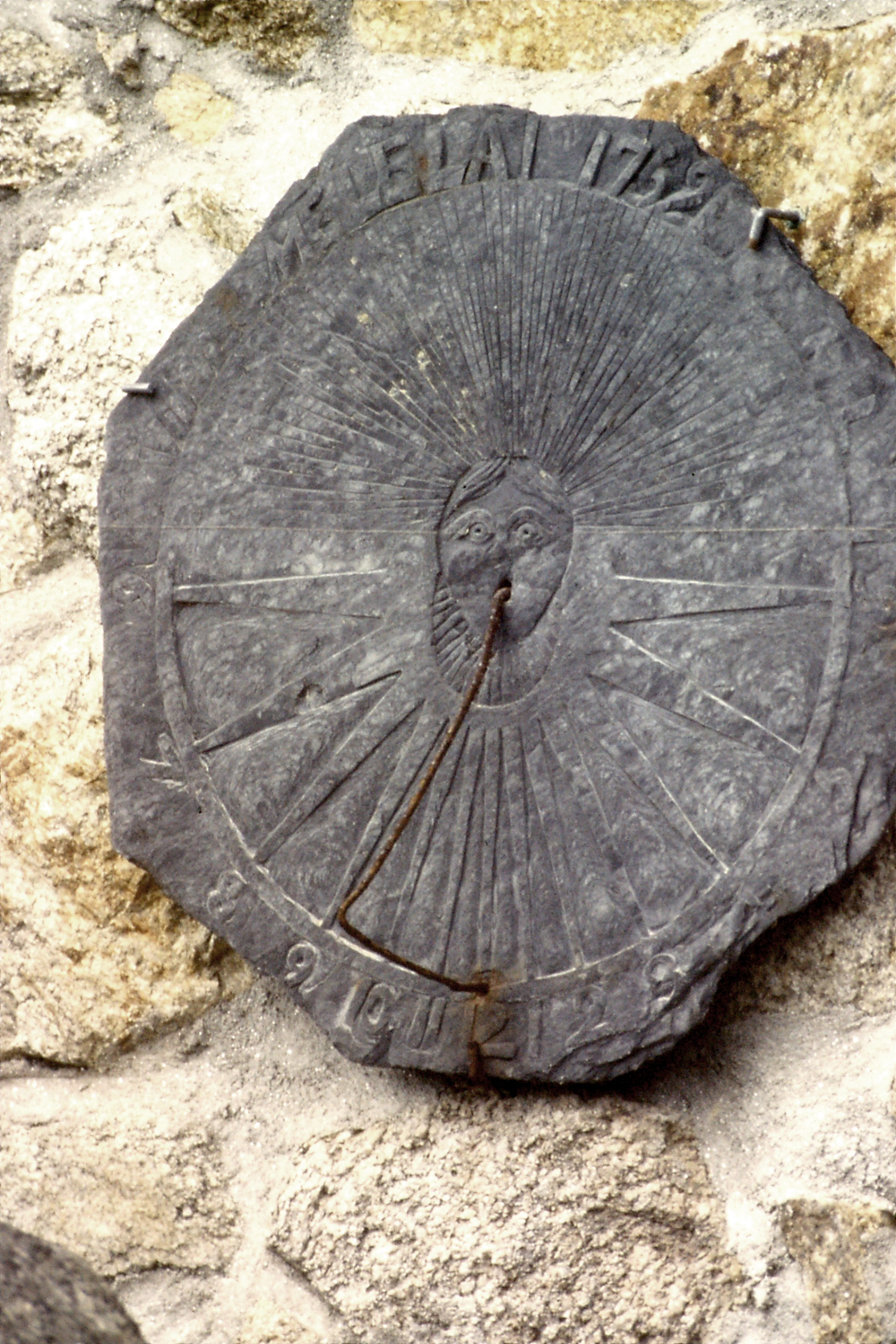 Pont-Croix, ferme. Cadran solaire daté 1752 placé sur la façade antérieure d'une dépendance en rez-de-chaussée. Inscription : GUILLOME LE LAI. (2001)Immatriculation