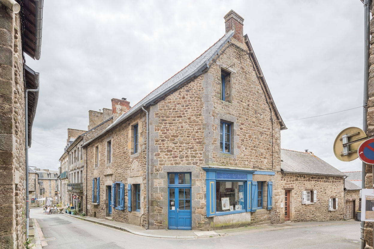 Boulangerie, devenue atelier d’artiste ‘Suivre les toiles’, rue de la Chanvrerie : avec sa vitrine en applique, son entrée d’angle et ses frontons arasés, l’édifice témoigne de différentes époques et usages.Immatriculation