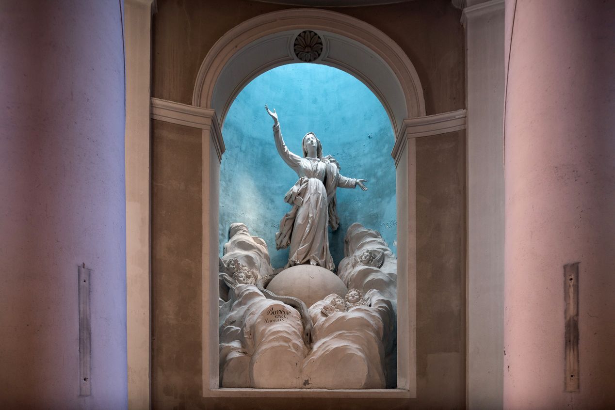 Vue de détail de la sculpture de l'Assomption dans le choeurImmatriculation