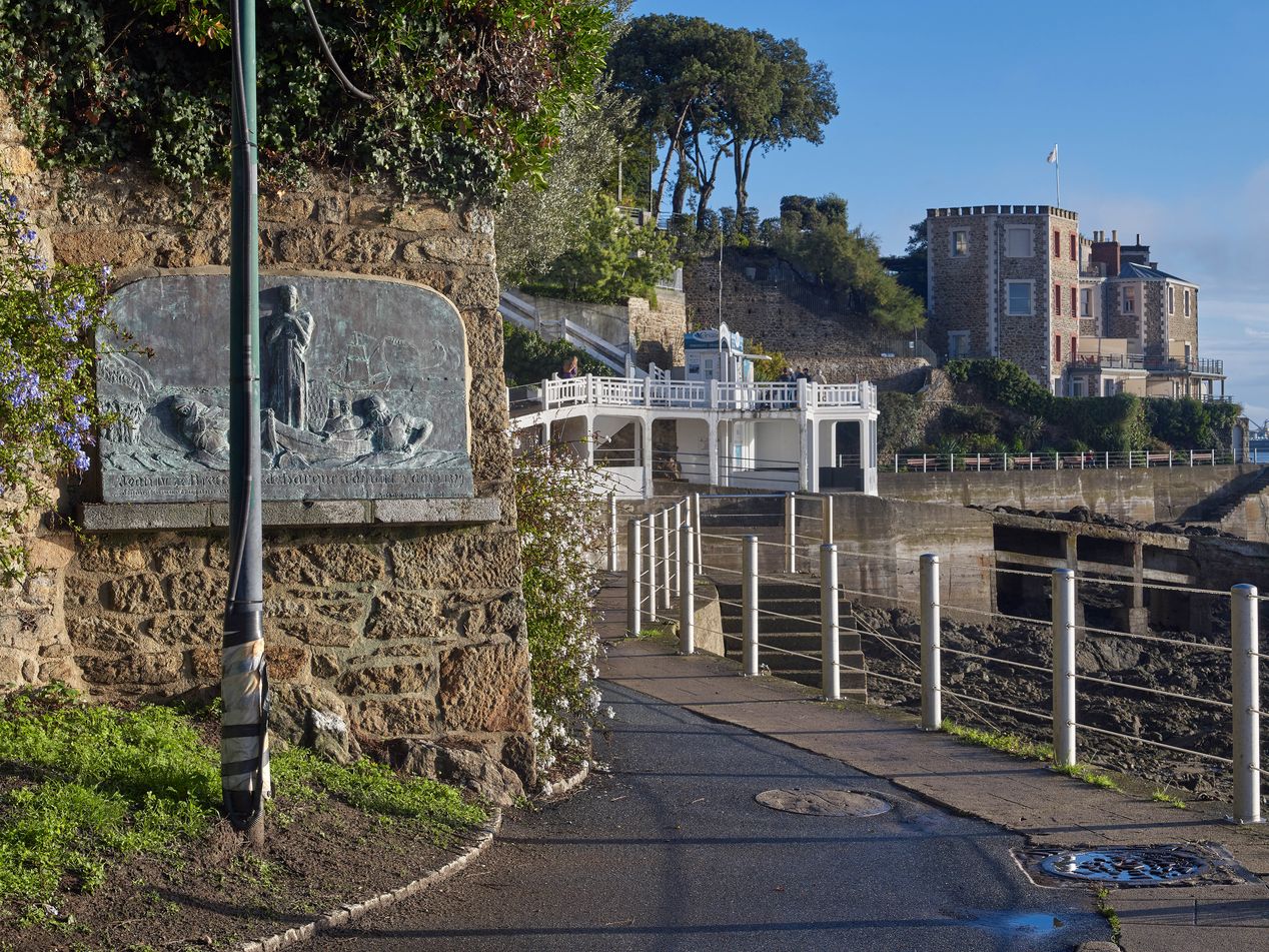Plaque commémorative du débarquement du duc Jean IV en 1379, vue de situation sur la promenadeImmatriculation