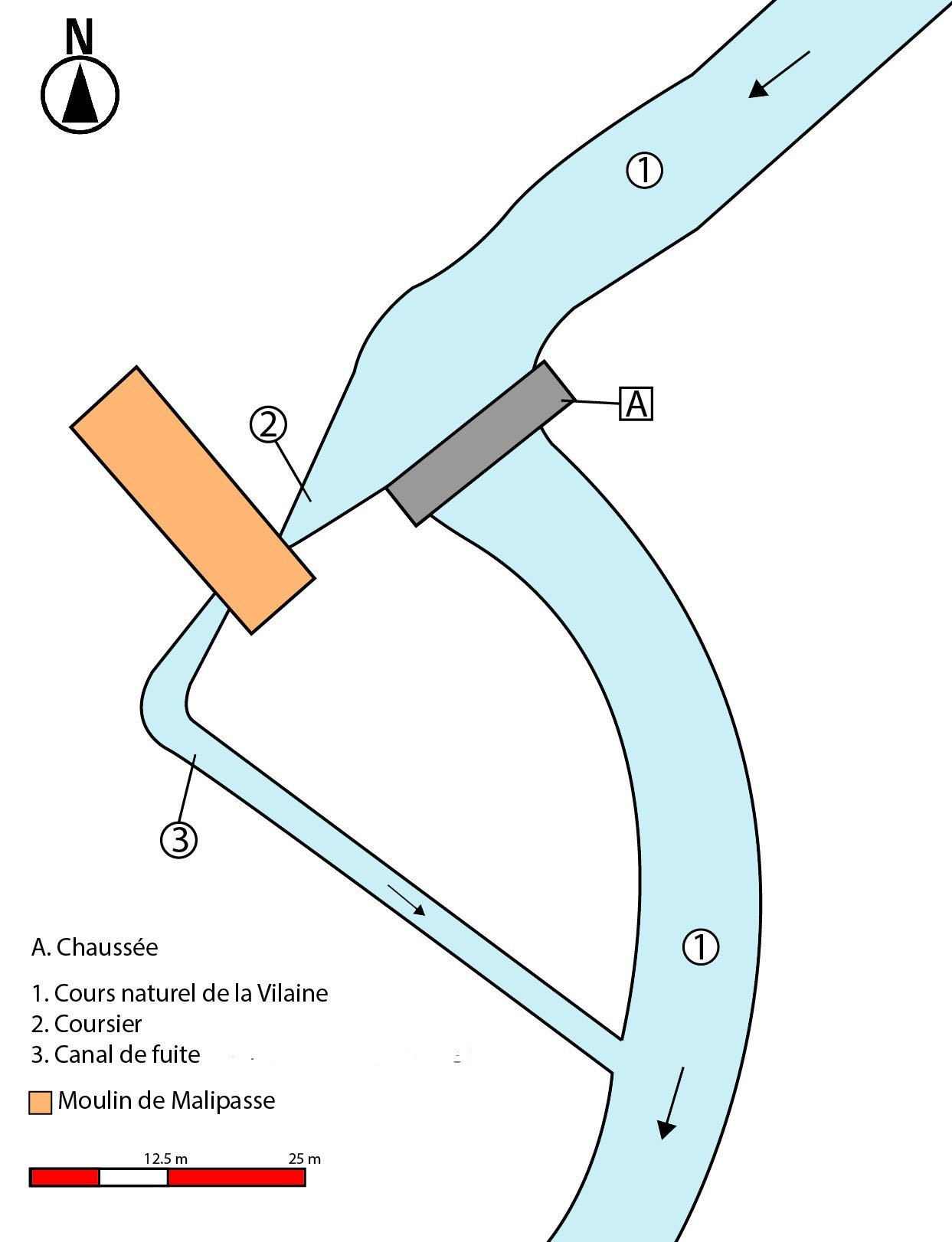 Schéma des infrastructures hydrauliques du moulinImmatriculation