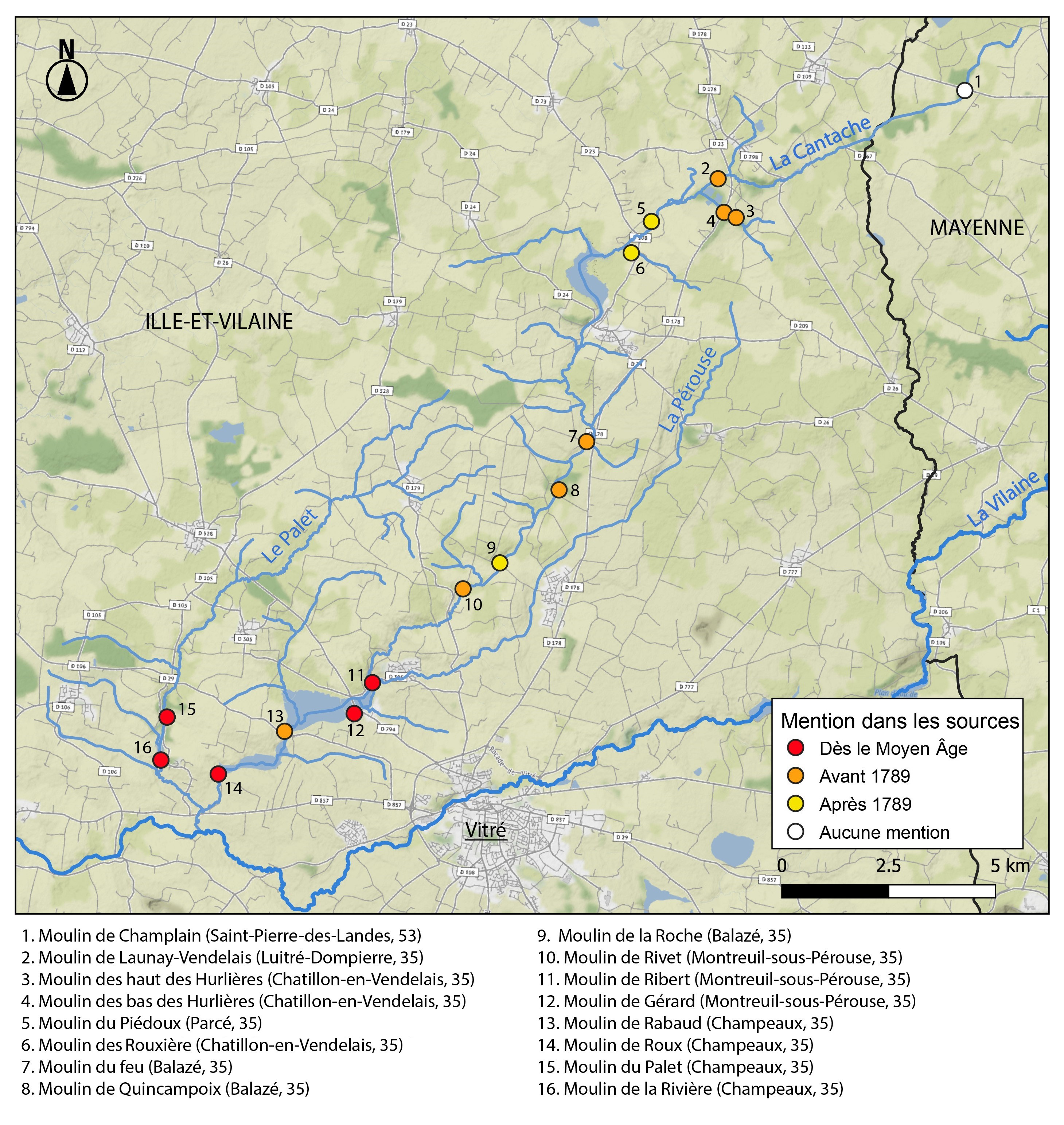 Les moulins du cours d’eau La Cantache,