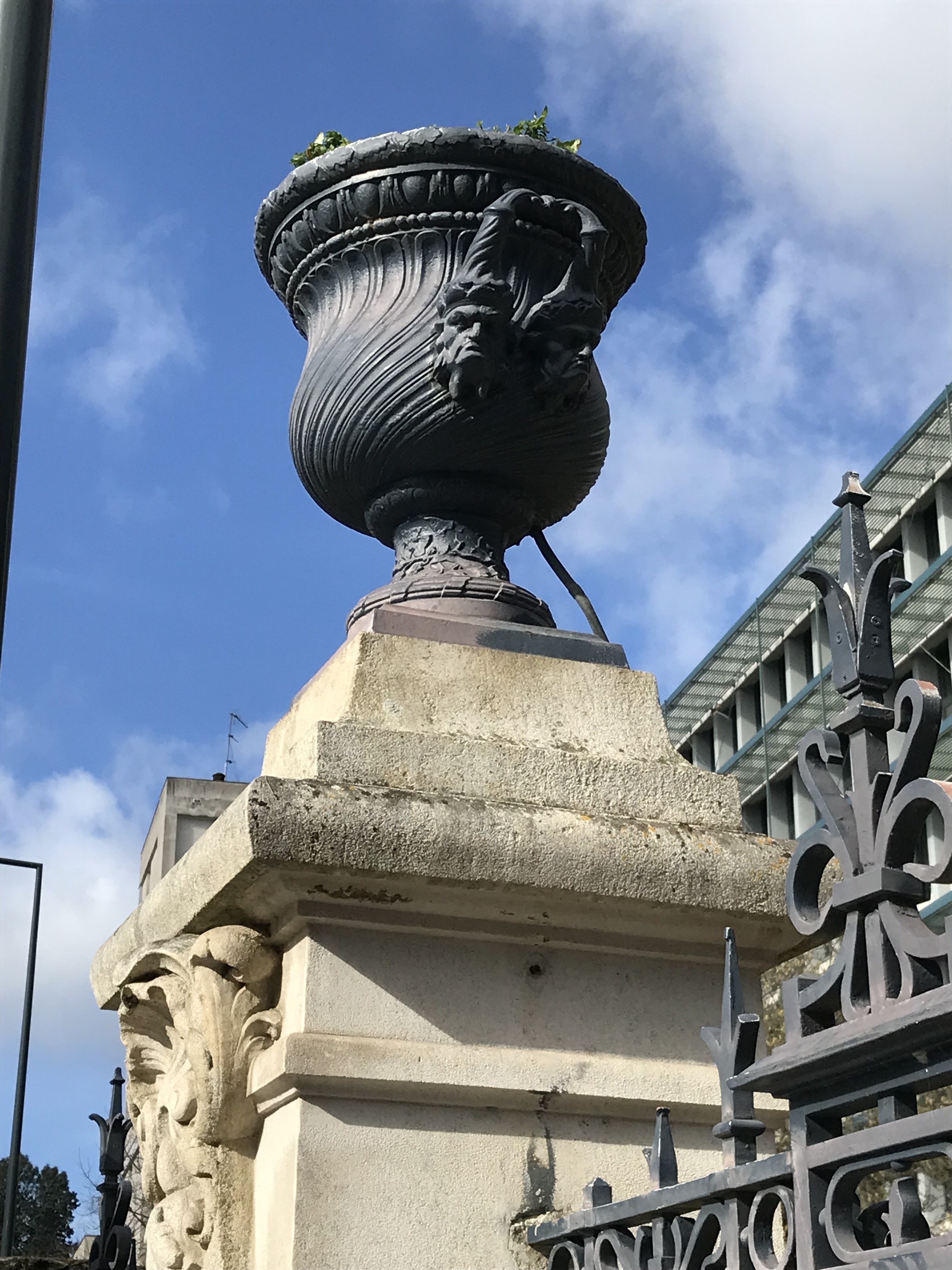 Grille de la rue de Paris, vase en bronzeImmatriculation
