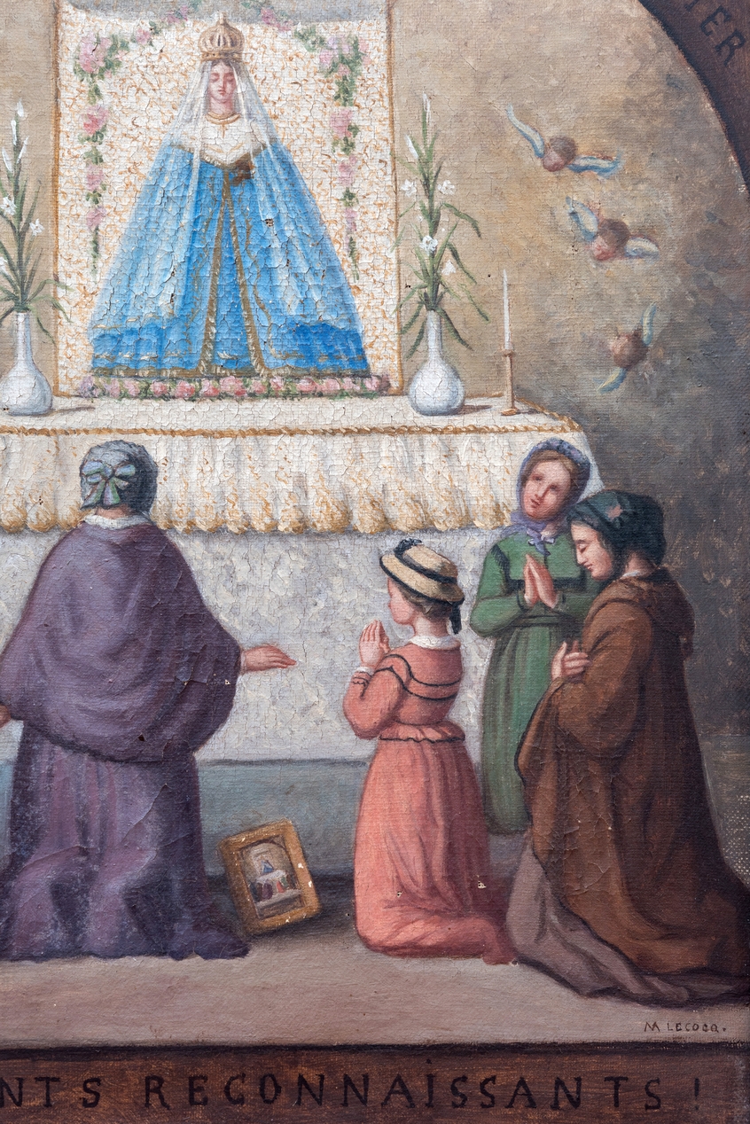 Au premier plan, sur la droite, un petit tableau met en abîme la statue miraculeuseImmatriculation