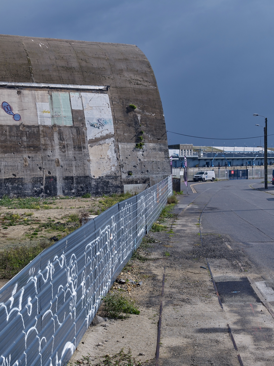 Dom-bunker Ouest dit "T6" avec encuvement pour canon antiaérien puis usine de construction navale, aire de réparation navale, port de pêche de Keroman (Lorient),