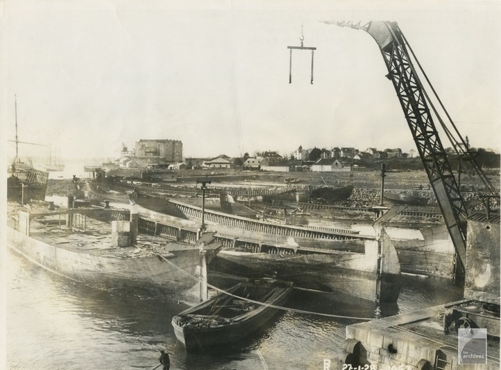 Construction du port de commerce de Kergroise en 1928Immatriculation