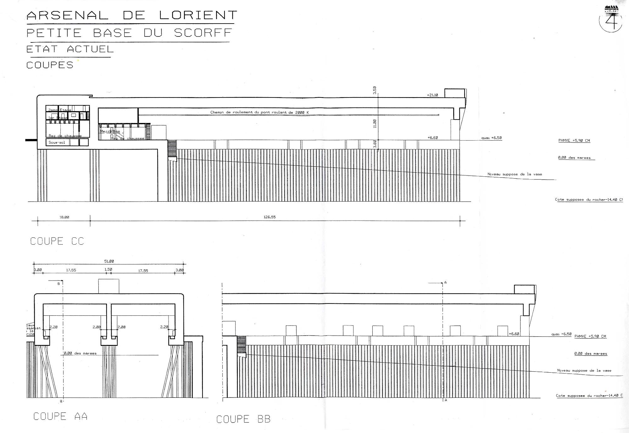 Service historique de la Défense. Coupes, non datées, Arsenal de Lorient - Petite base du Scorff.