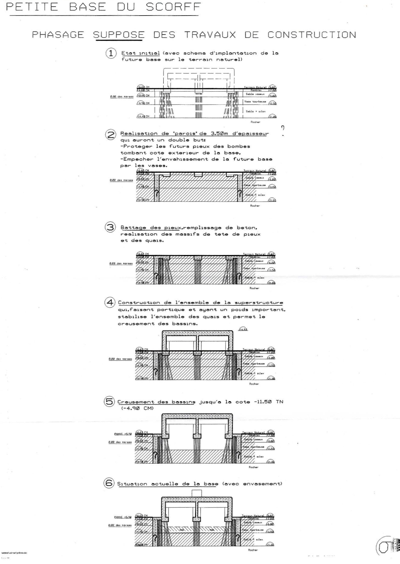 Phasage supposé des travaux de construction, document non daté, Arsenal de Lorient - Petite base du ScorffImmatriculation