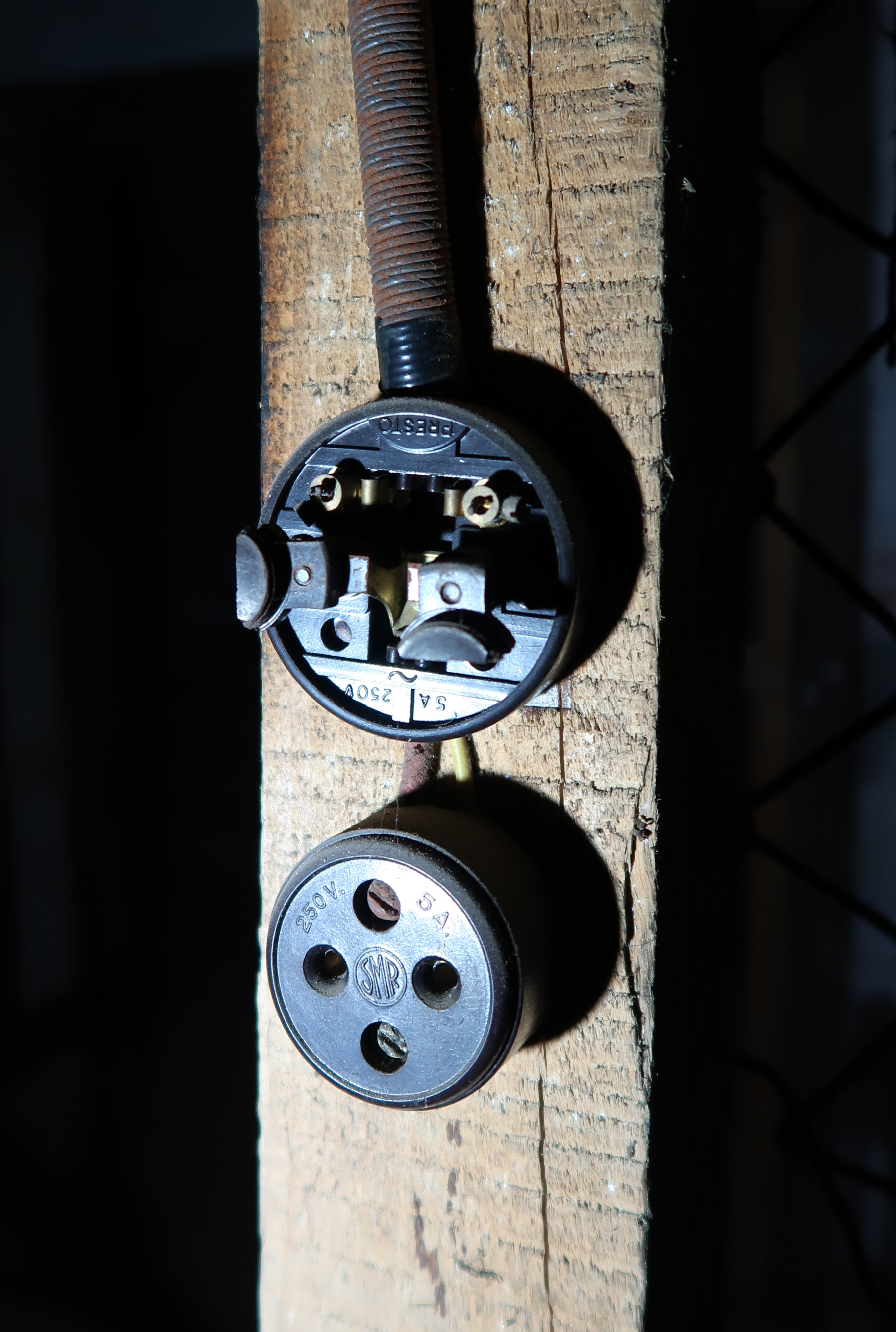 Premier étage : interrupteur et prise de marque SMR 250 V. 5A.Immatriculation