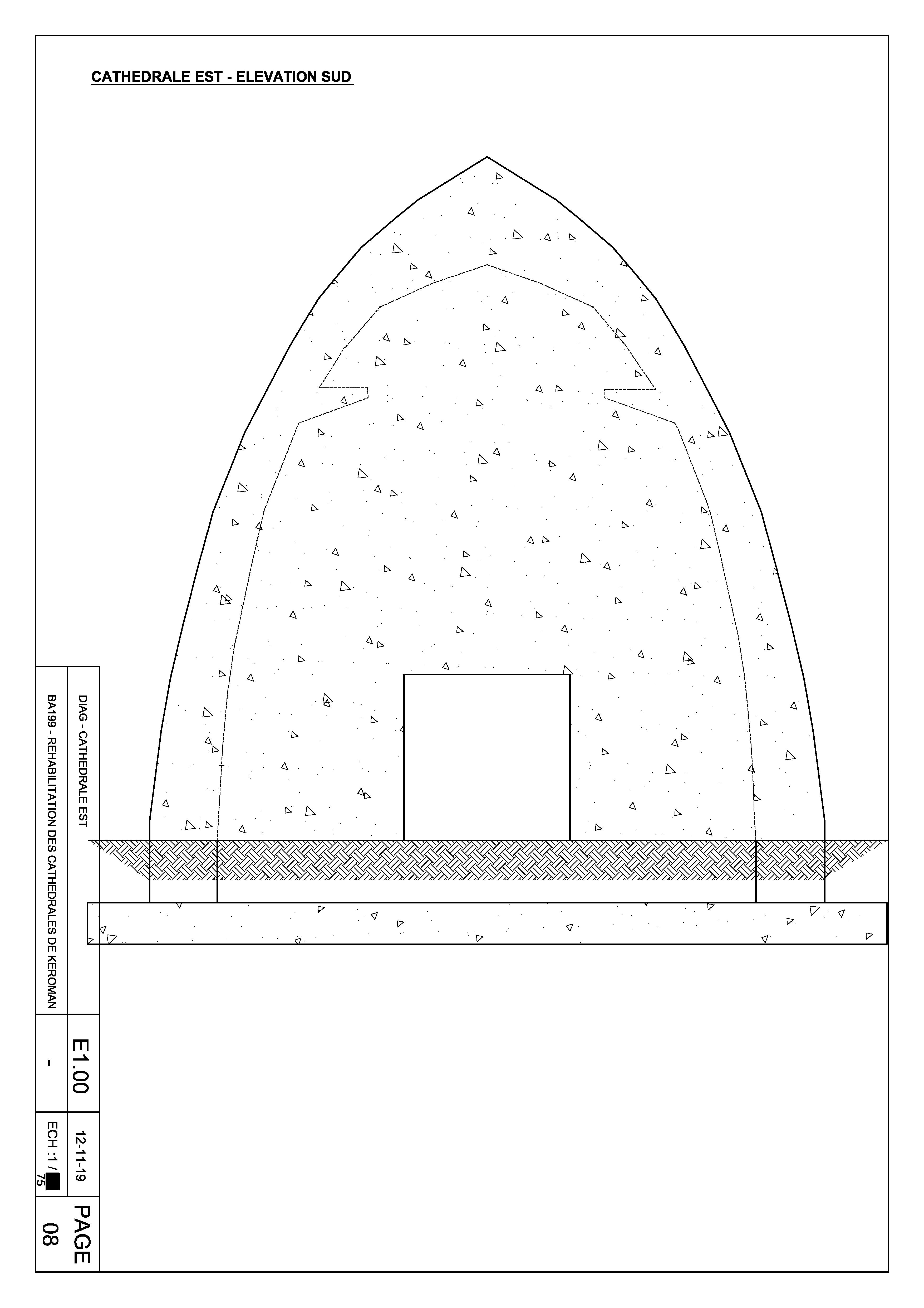 Elévation sud, 2019 (Projet de réhabilitation des cathédrales de l'aire de réparation navale de Lorient-Keroman)Immatriculation