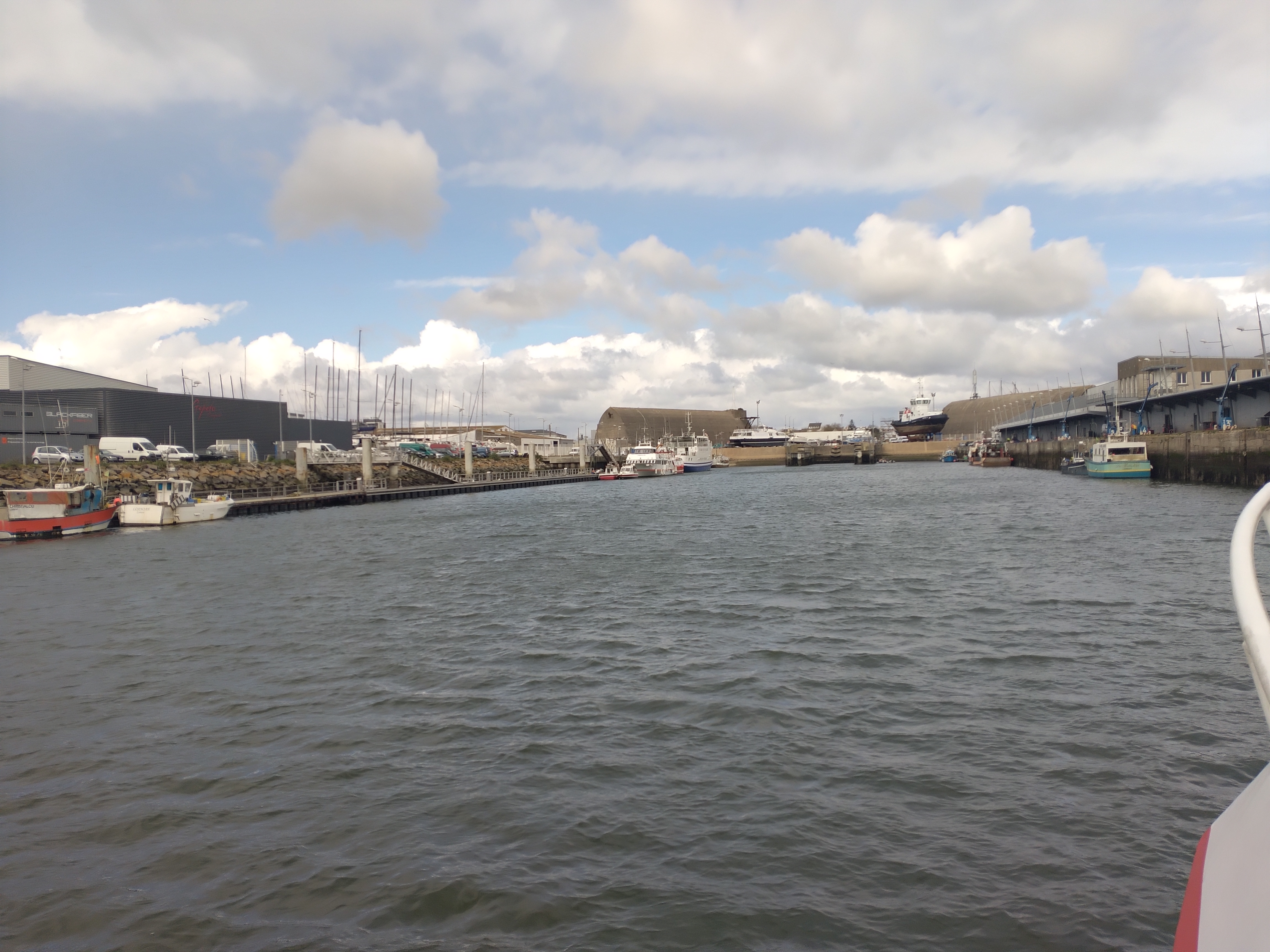 Vue sur le bassin long et l'anneau de réparation navale de Keroman depuis l'eauImmatriculation