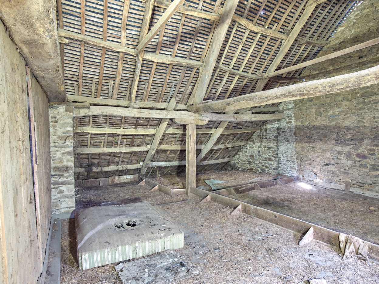 Logis début 17e siècle. Grenier avec appentis postérieur dans le prolongement. Charpente avec ferme centrale reposant sur une sablière, elle-même soutenue par un poteauImmatriculation