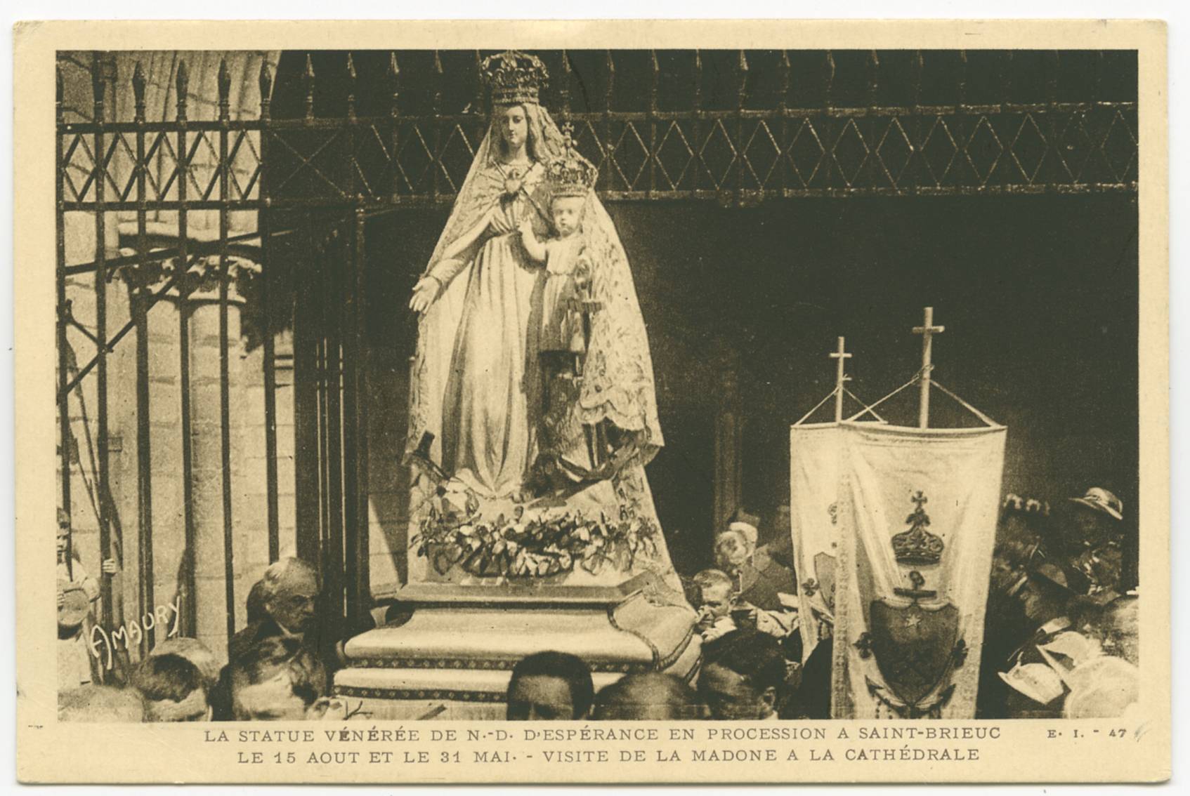 Carte postale : Détail de la statue de Notre-Dame d'Espérance en procession